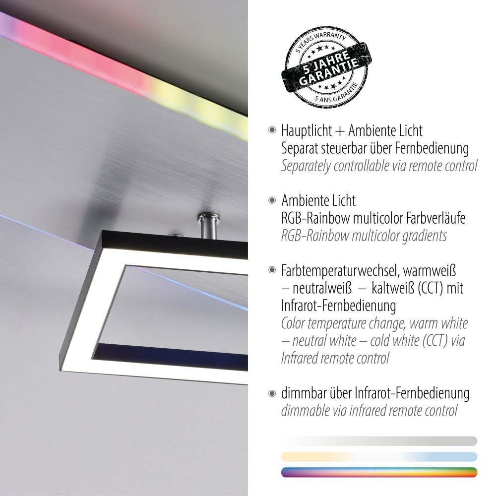 Leuchten Direkt RENDA Plafondlamp LED Zilver, 2-lichts, Afstandsbediening, Kleurwisselaar