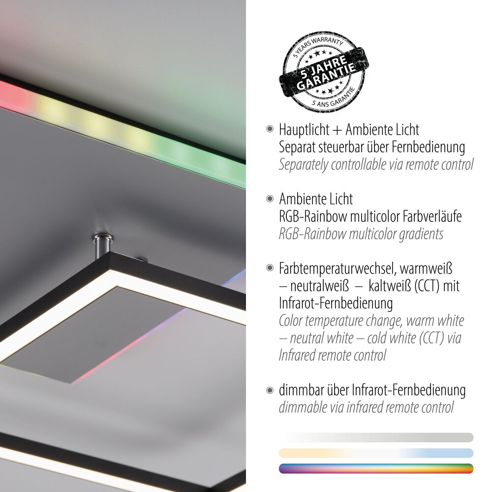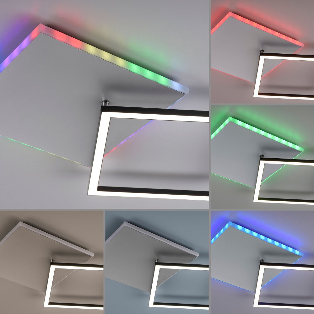 Leuchten Direkt RENDA Plafondlamp LED Zilver, 2-lichts, Afstandsbediening, Kleurwisselaar