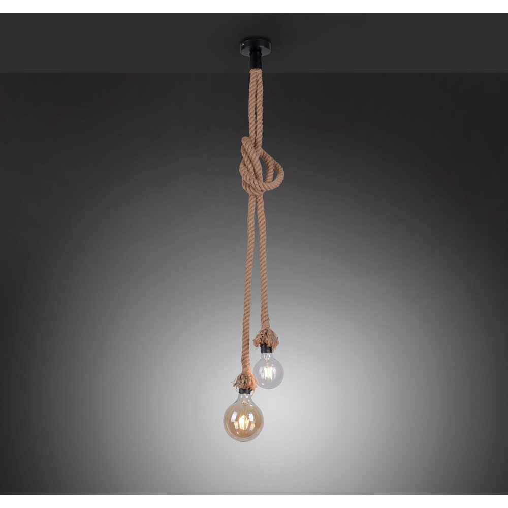 Leuchten-Direkt ROPE Hanglamp Bruin, Zwart, 2-lichts