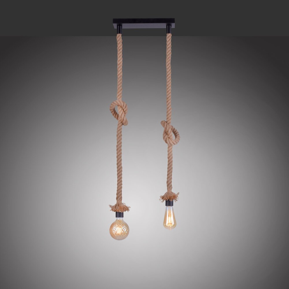 Leuchten-Direkt ROPE Hanglamp Bruin, Zwart, 2-lichts