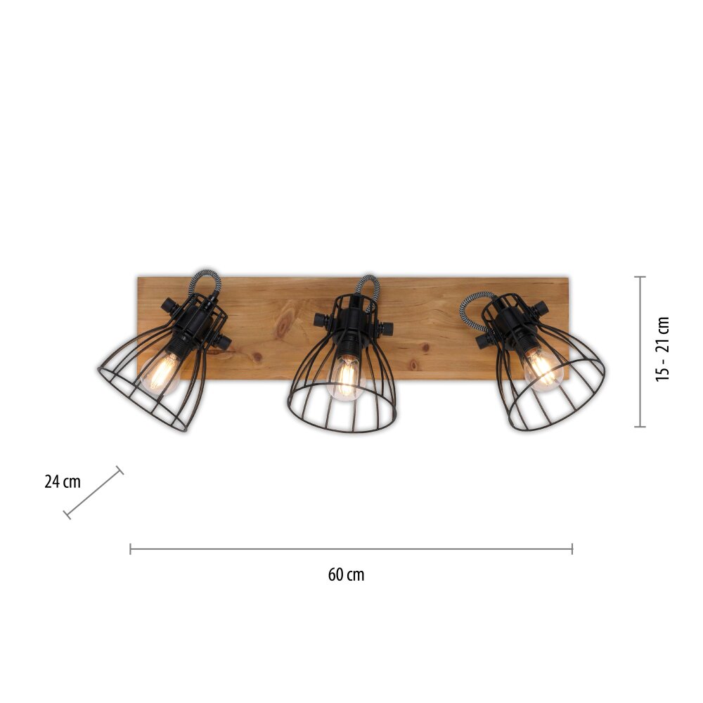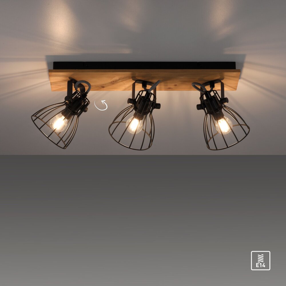 Leuchten-Direkt TARO Plafondlamp Natuurlijke kleuren, Zwart, 3-lichts