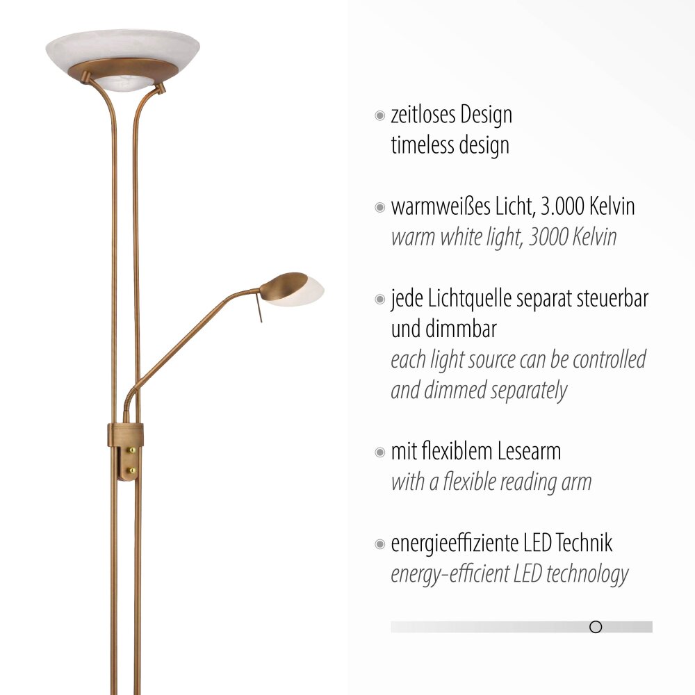 Leuchten-Direkt ZAHARA Uplighter LED Oud messing, 2-lichts