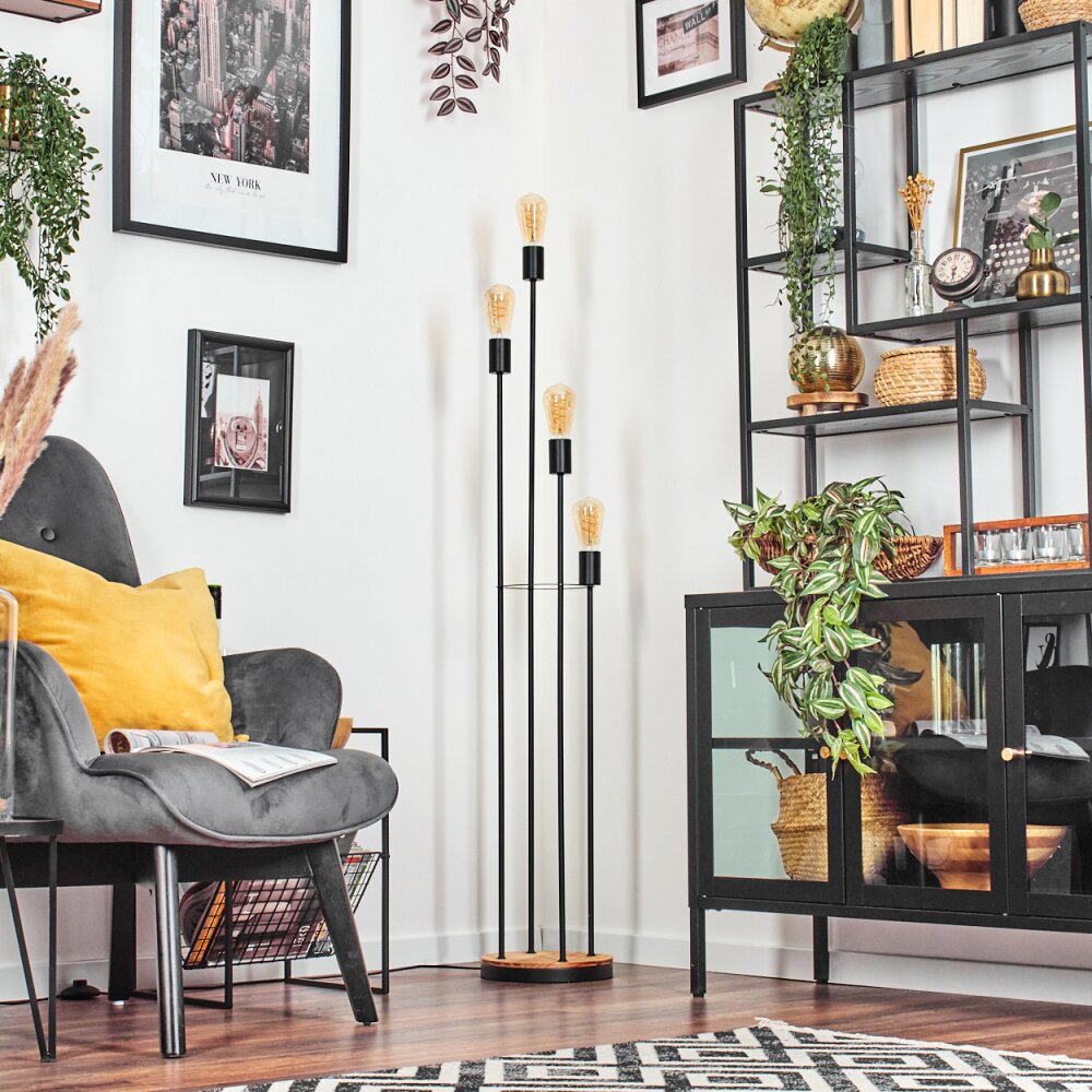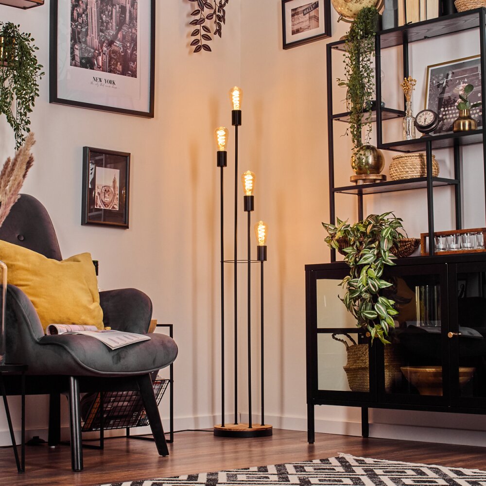 Limmingen Staande lamp Hout donker, Zwart, 4-lichts