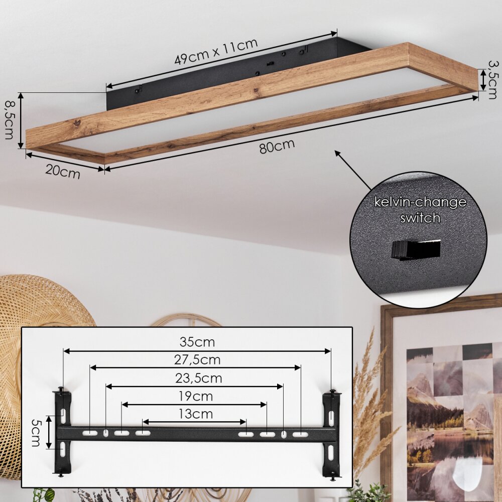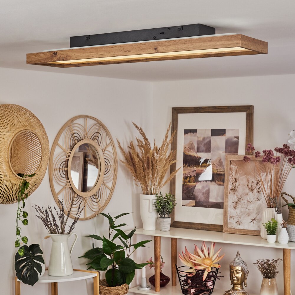 Longvic Plafondpaneel LED Bruin, houtlook, Zwart, 1-licht
