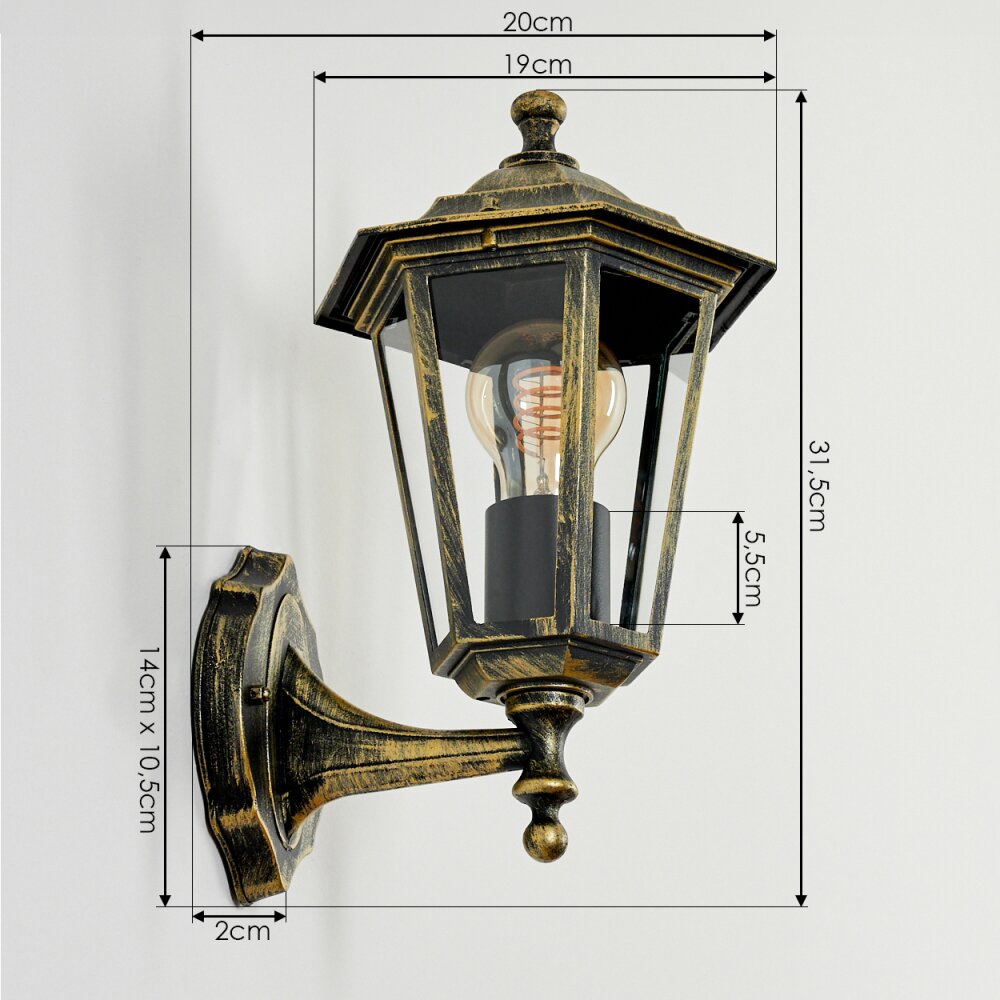 Loria Buiten muurverlichting Goud, Zwart, 1-licht