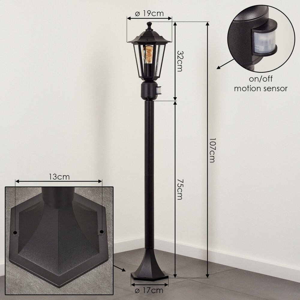 Loria Buitenlicht, Pad licht Zwart, 1-licht, Bewegingsmelder