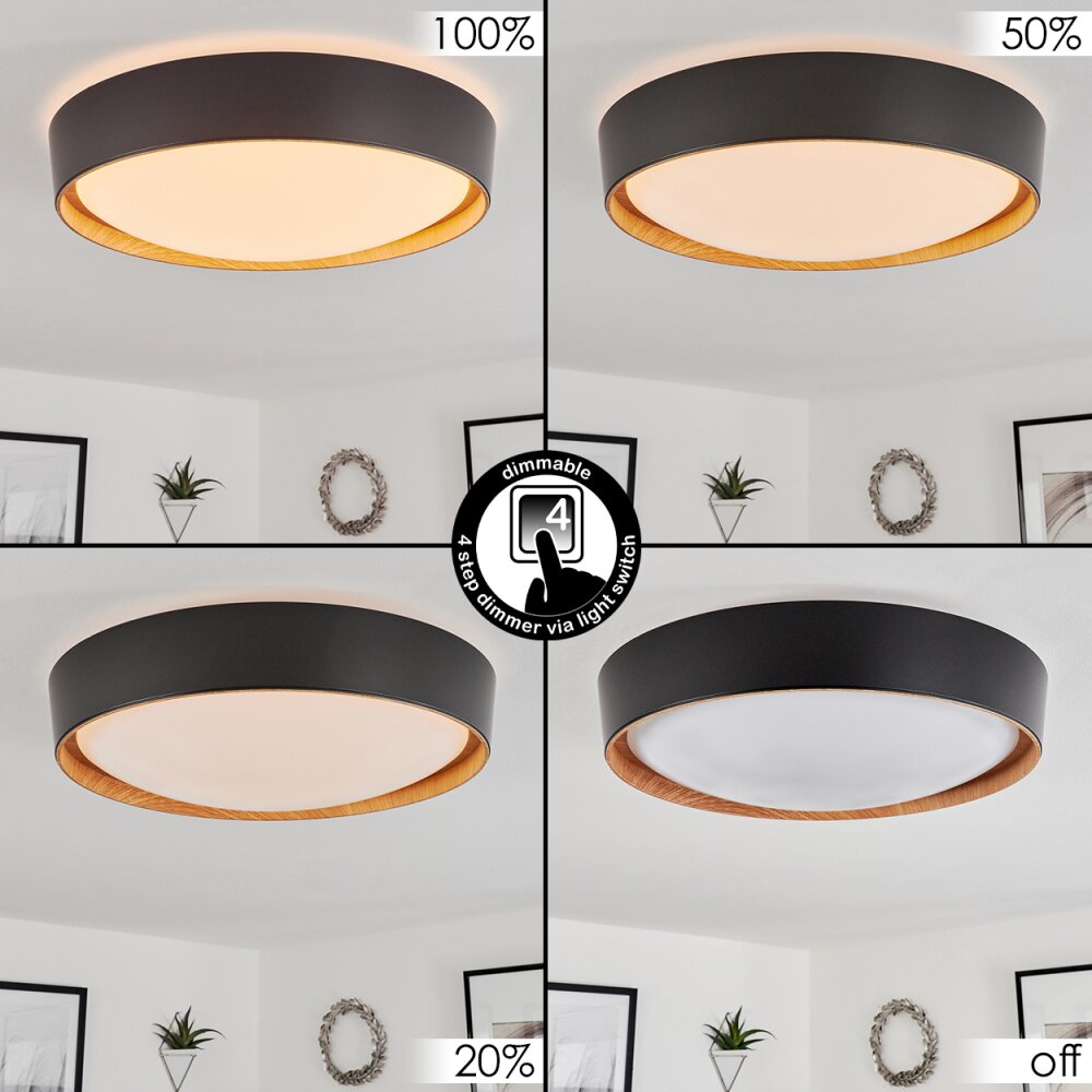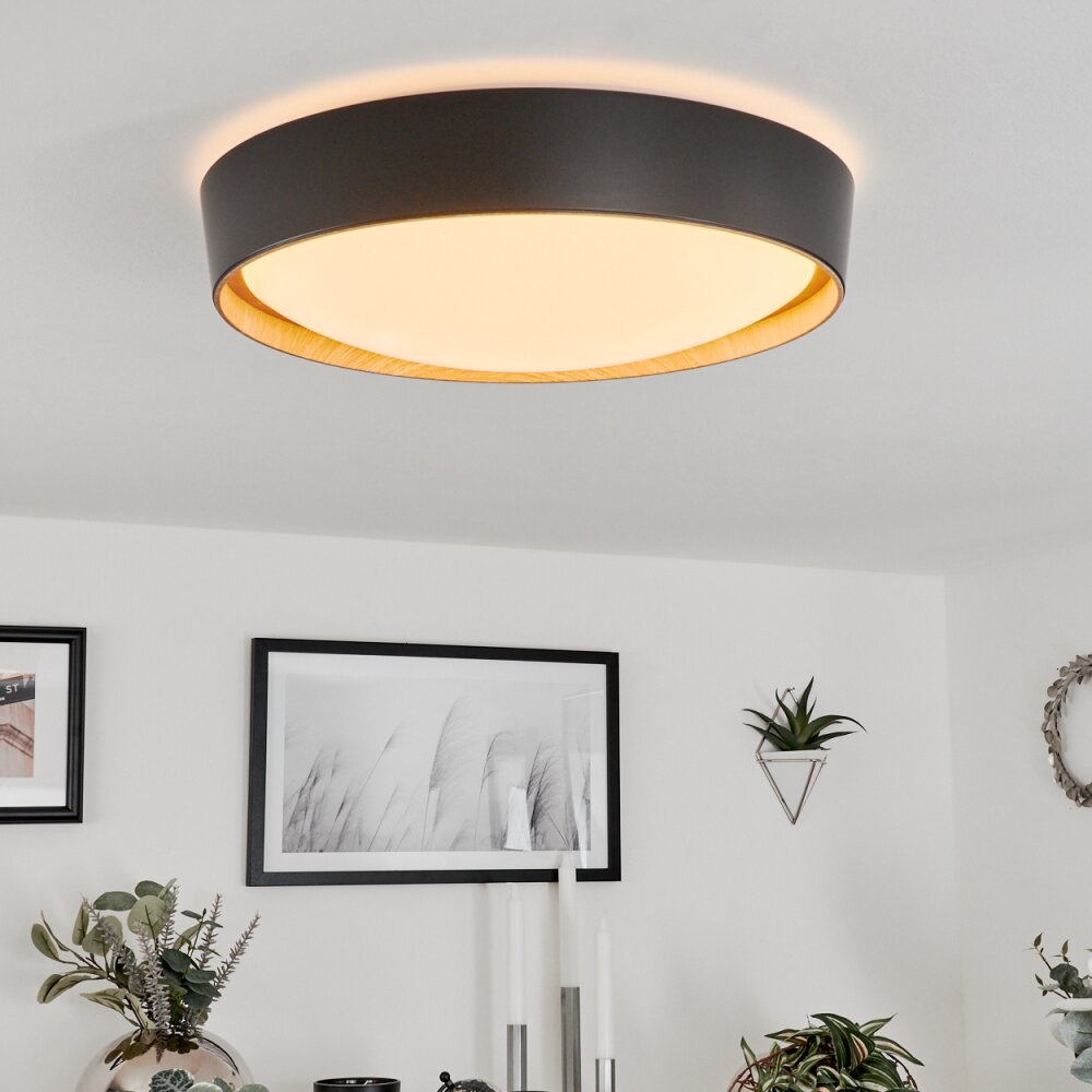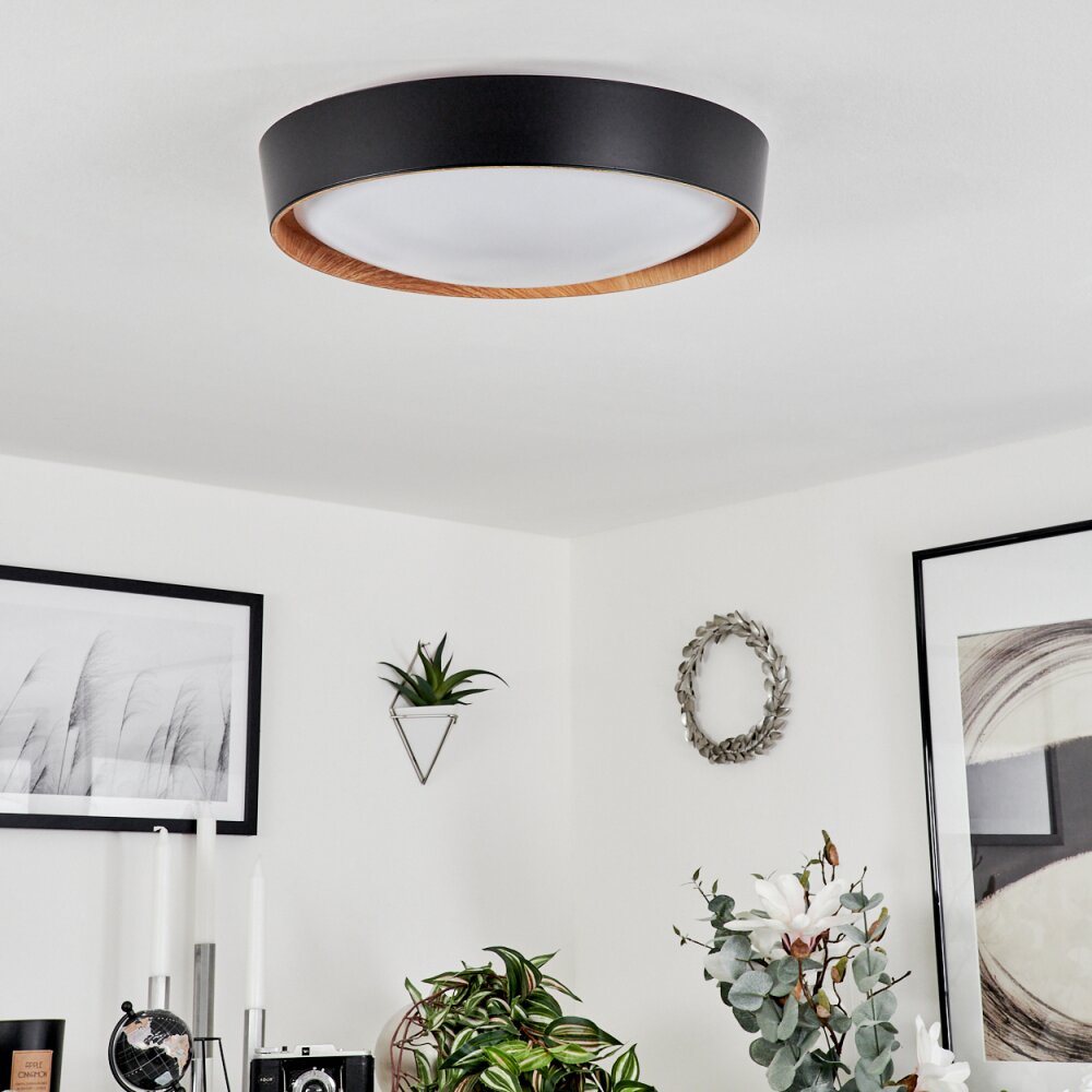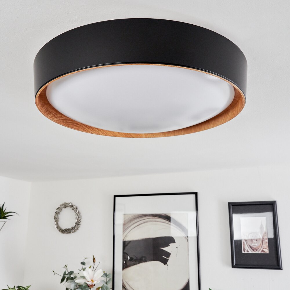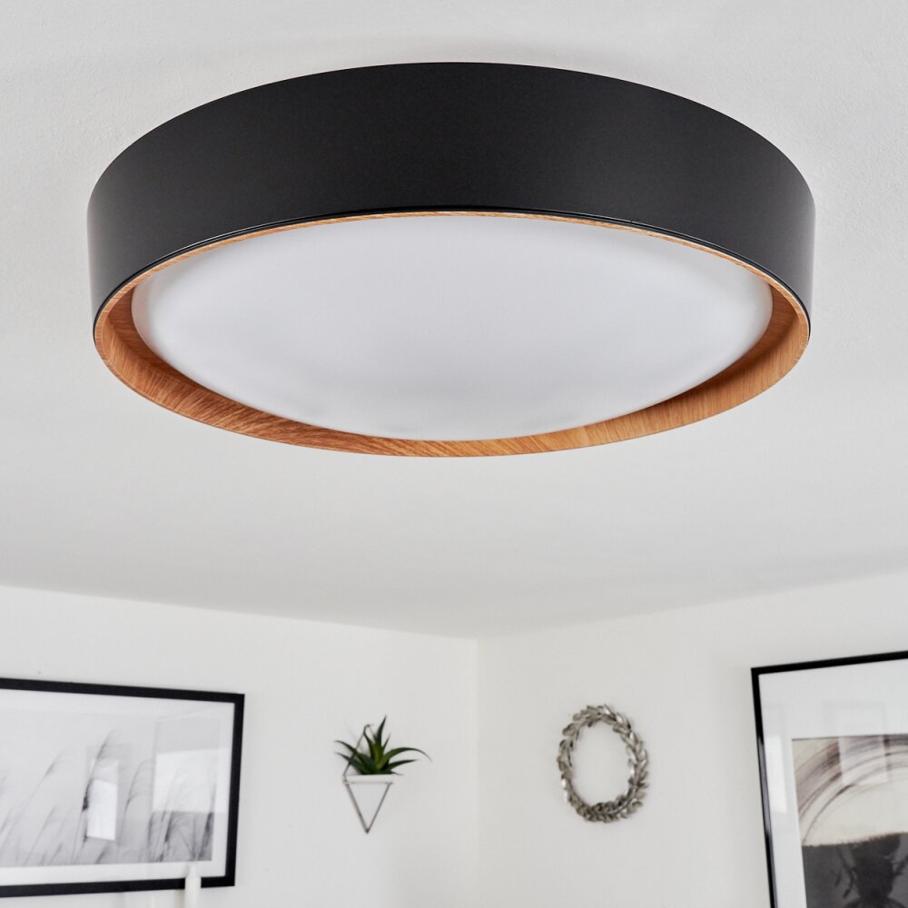 Louea Plafondlamp LED Bruin, houtlook, Zwart, 1-licht