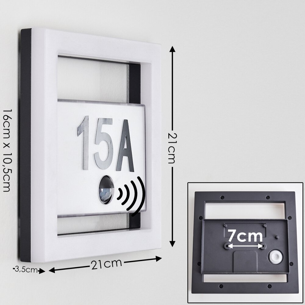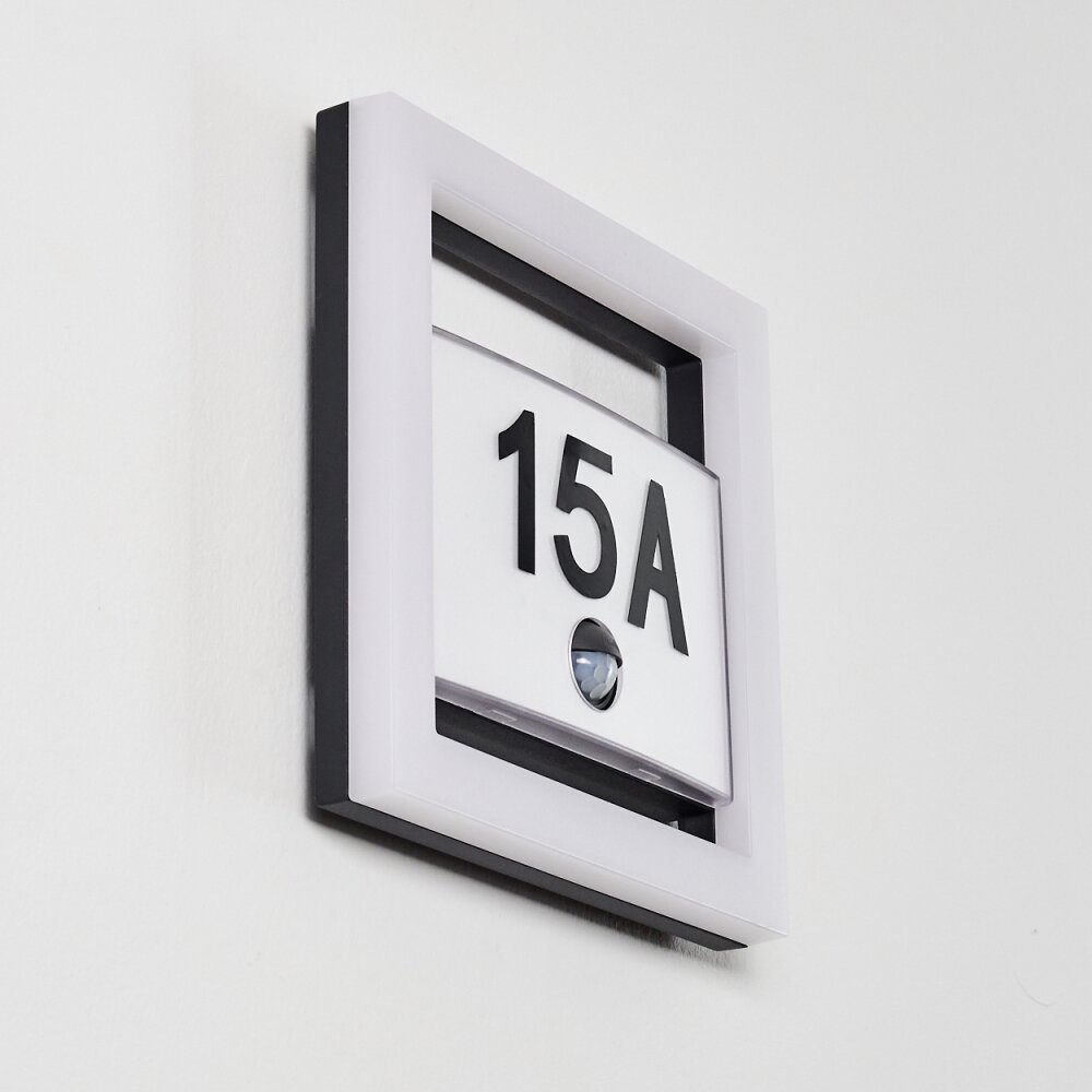 Louisville Huisnummer verlichting LED Grijs, 1-licht, Bewegingsmelder
