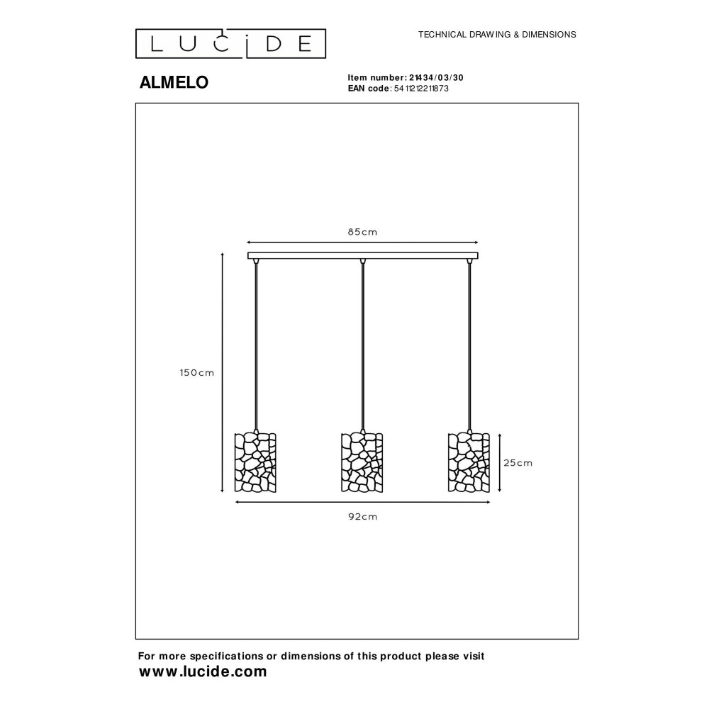 Lucide ALMELO Hanglamp Zwart, 3-lichts