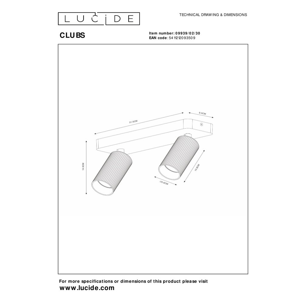 Lucide CLUBS Plafondlamp Zwart, 2-lichts