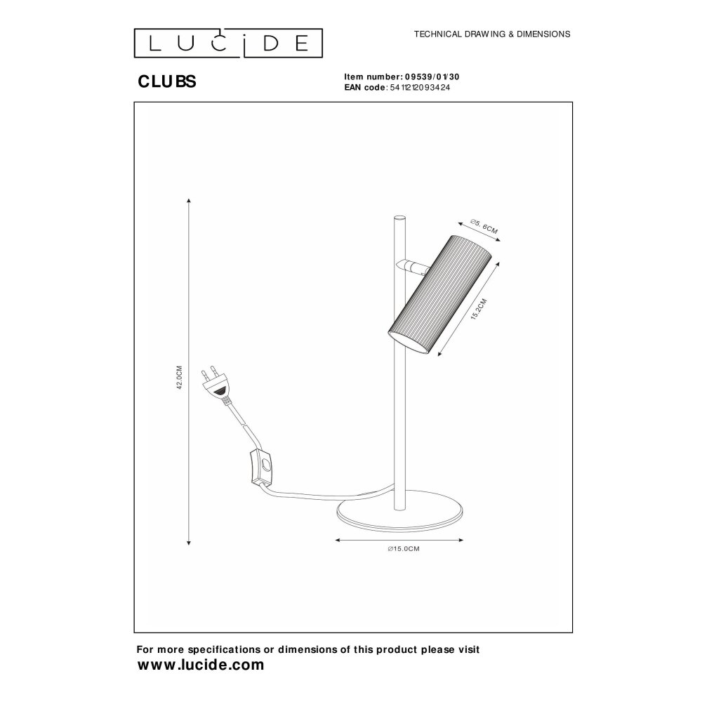 Lucide CLUBS Tafellamp Zwart, 1-licht