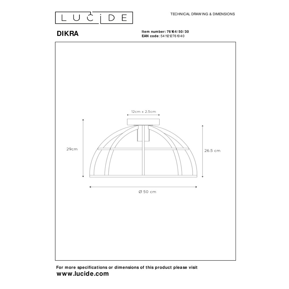 Lucide DIKRA Plafondlamp Zwart, 1-licht