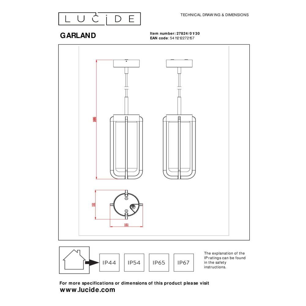 Lucide GARLAND Buiten hanglamp Zwart, 1-licht