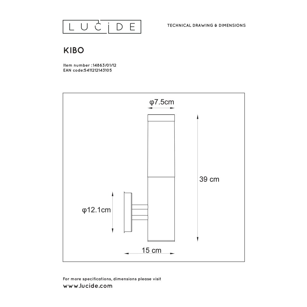 Lucide KIBO Muurlamp Aluminium, 1-licht