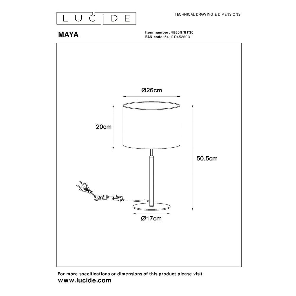 Lucide MAYA Tafellamp Zwart, 1-licht
