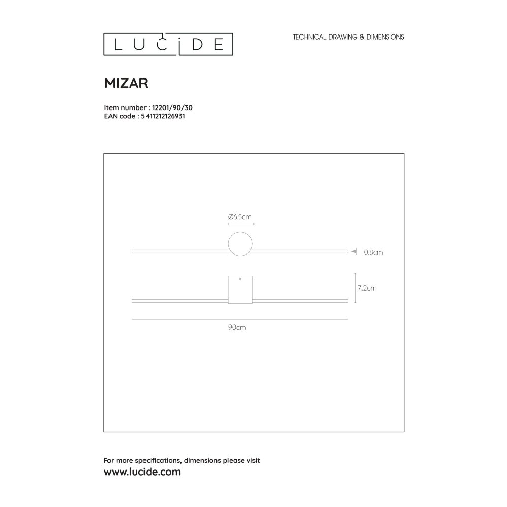 Lucide MIZAR Muurlamp LED Zwart, 1-licht