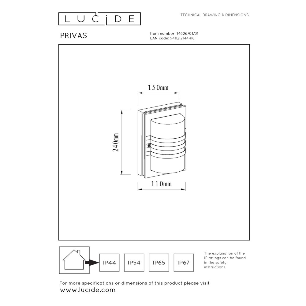 Lucide PRIVAS Buiten muurverlichting Wit, 1-licht