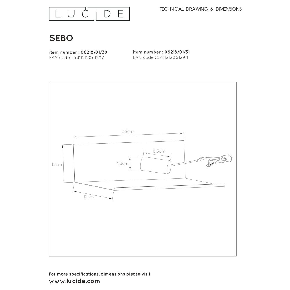 Lucide SEBO Bedlamp Zwart, 1-licht