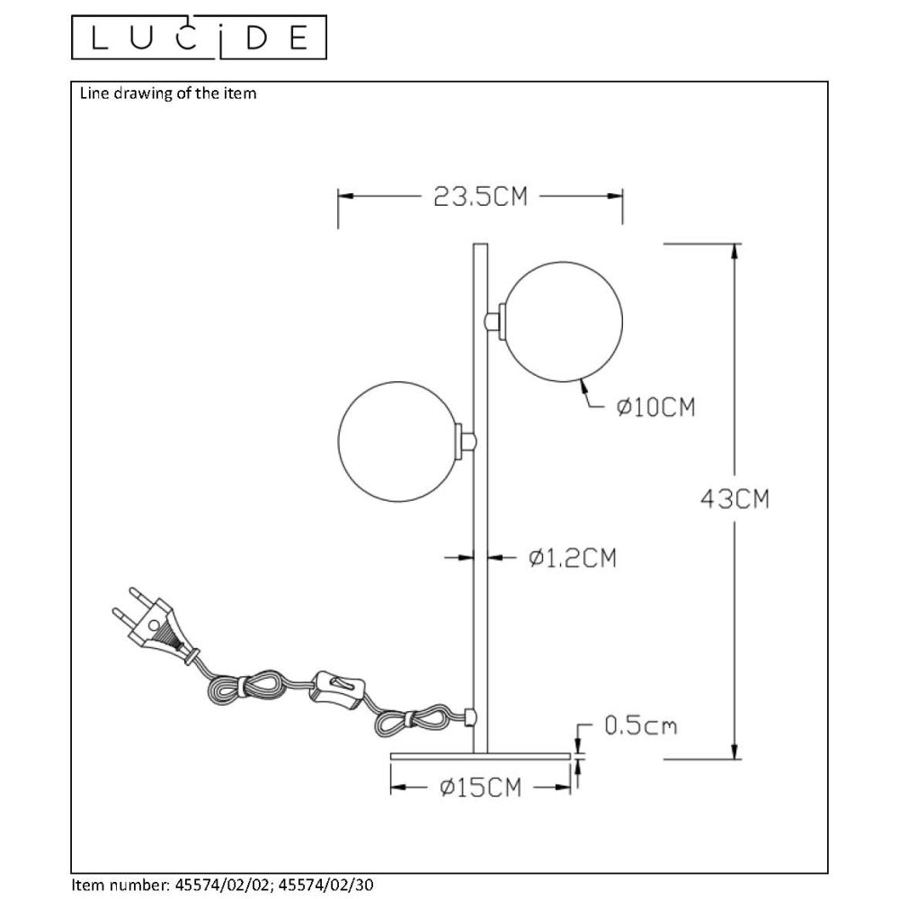 Lucide TYCHO Tafellamp Zwart, 2-lichts