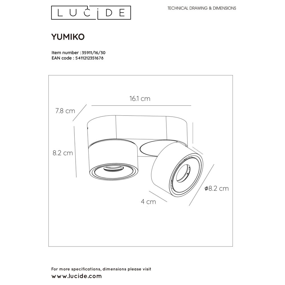 Lucide YUMIKO Plafond spot LED Zwart, 2-lichts