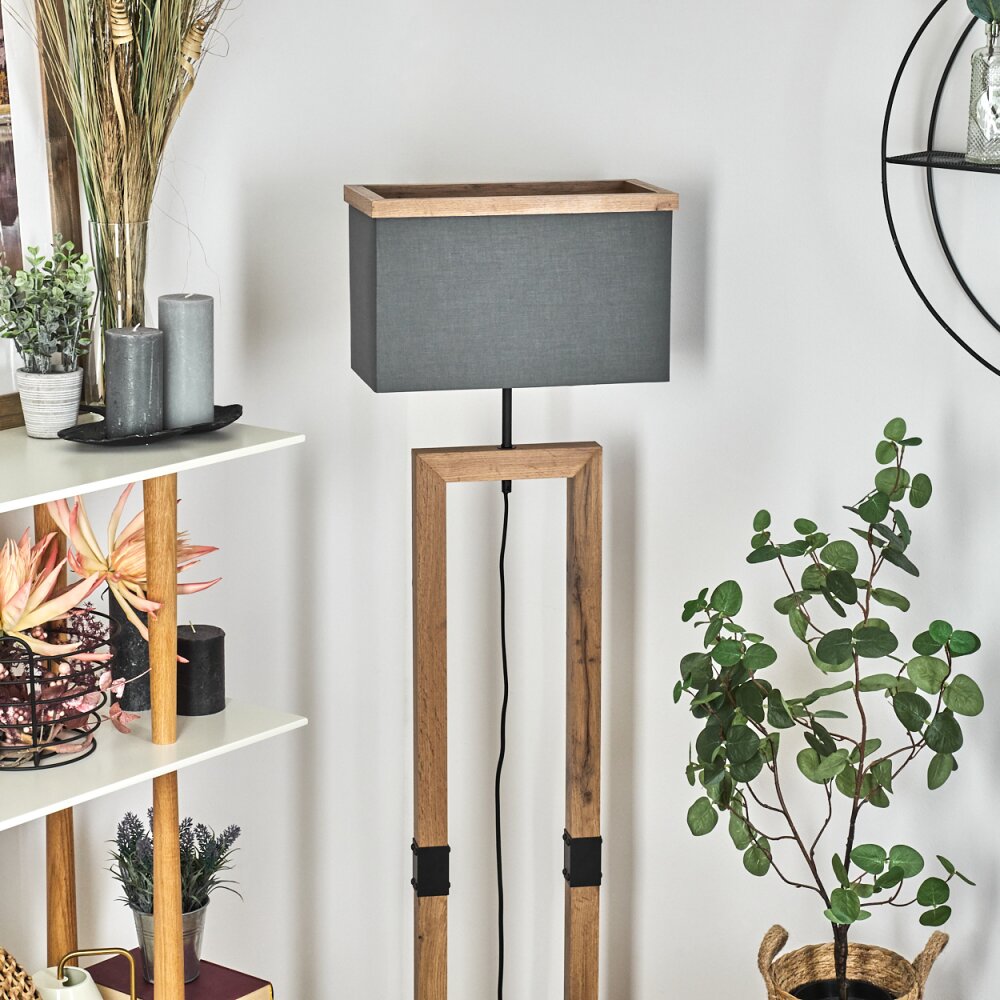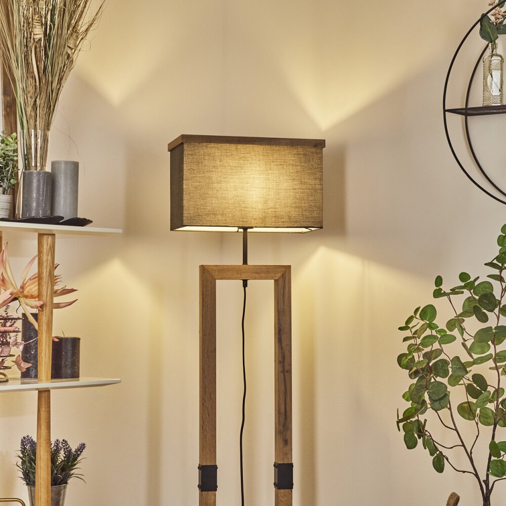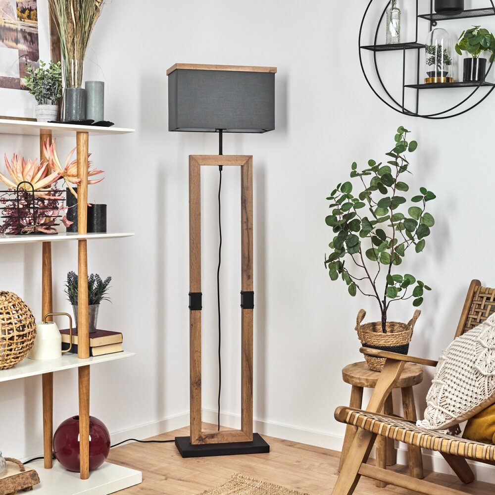 Lure Staande lamp Bruin, houtlook, Zwart, 1-licht