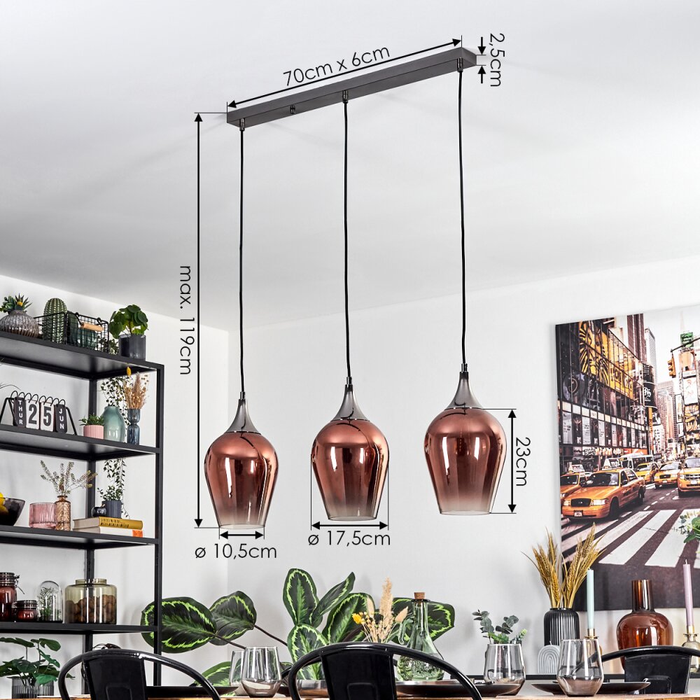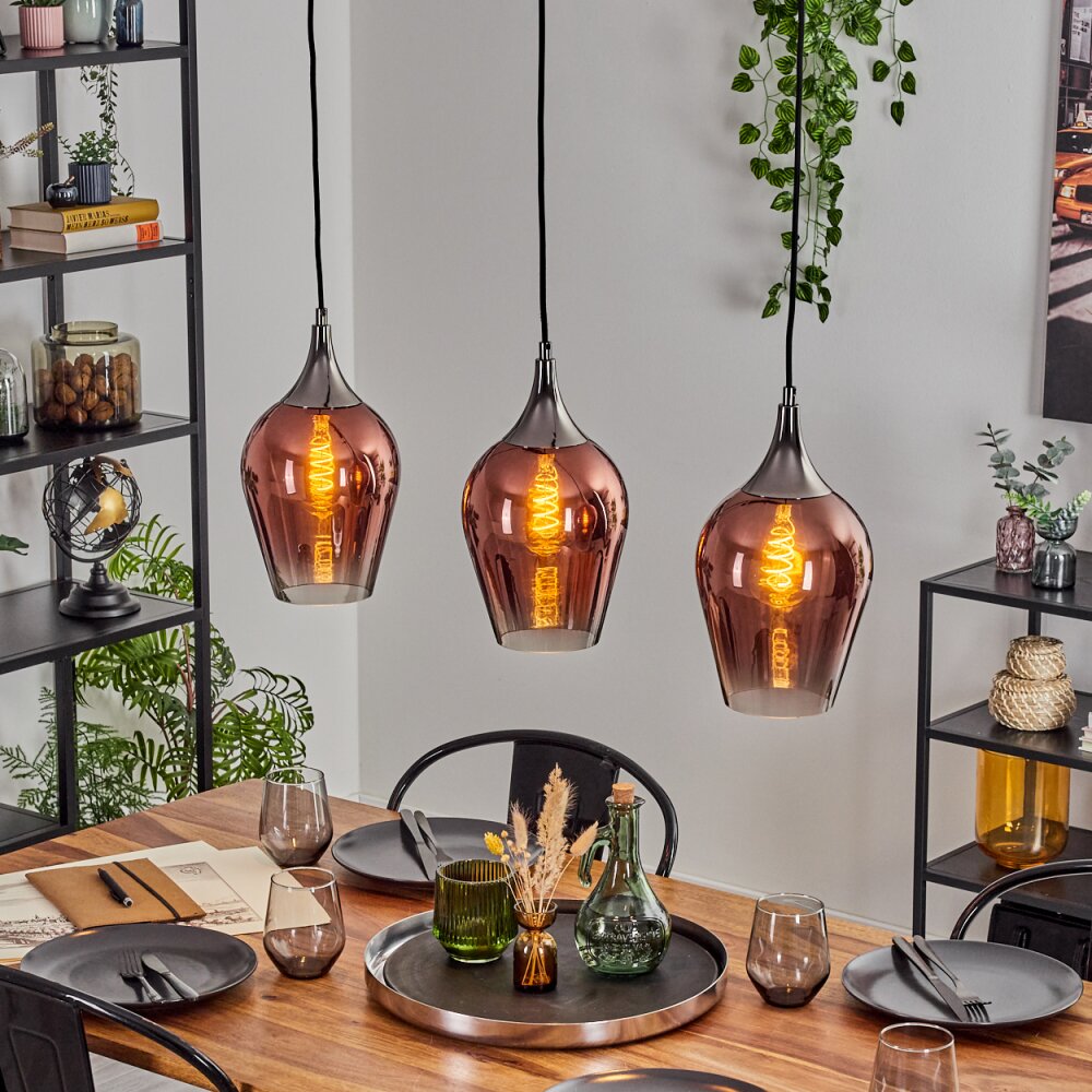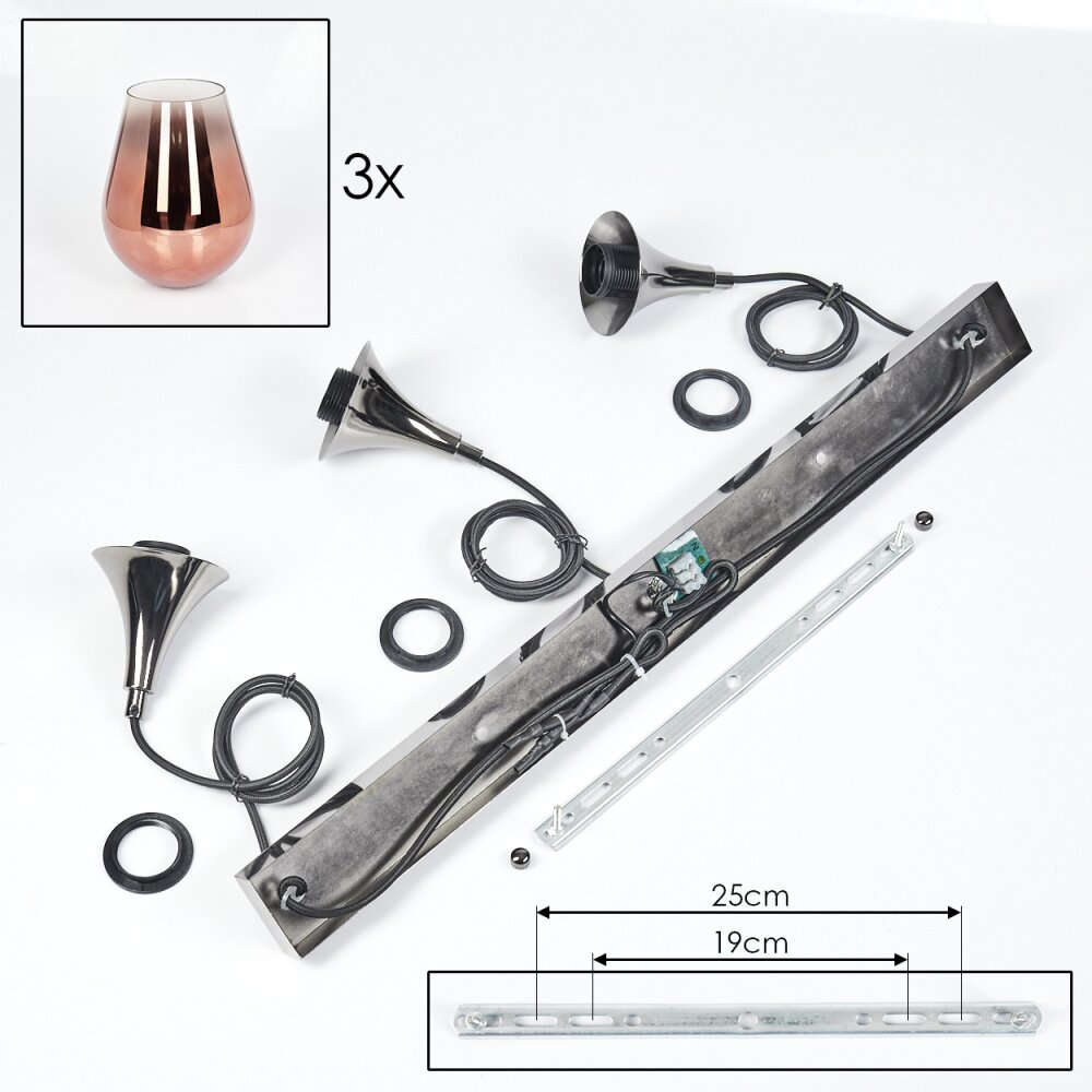 Lutarp Hanglamp, Hanglamp Chroom, Zwart, 3-lichts