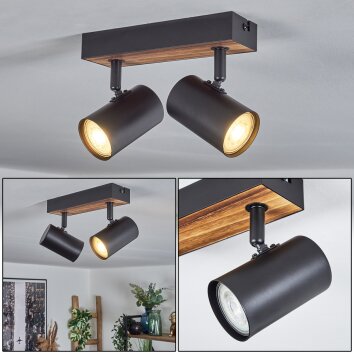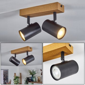 Macos Plafondlamp, Plafondspot LED Bruin, houtlook, Zwart, 1-licht