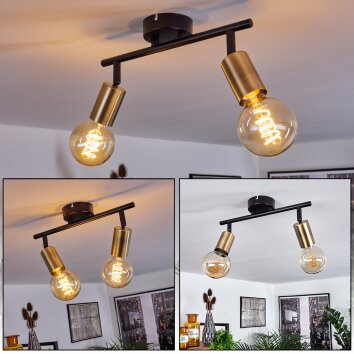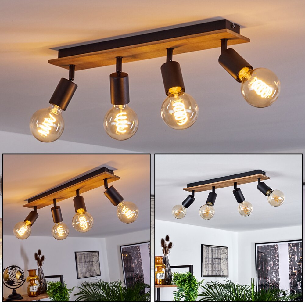 Maidford Plafondlamp Hout donker, Zwart, 4-lichts