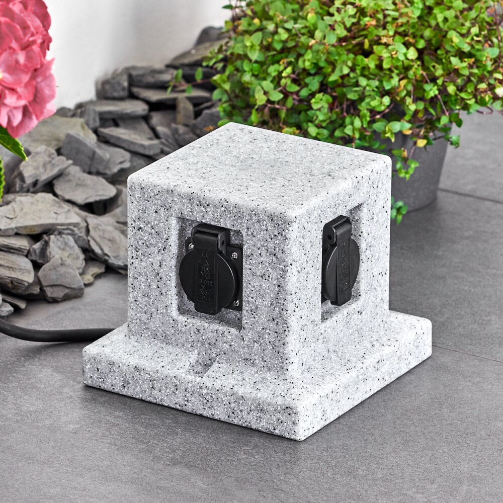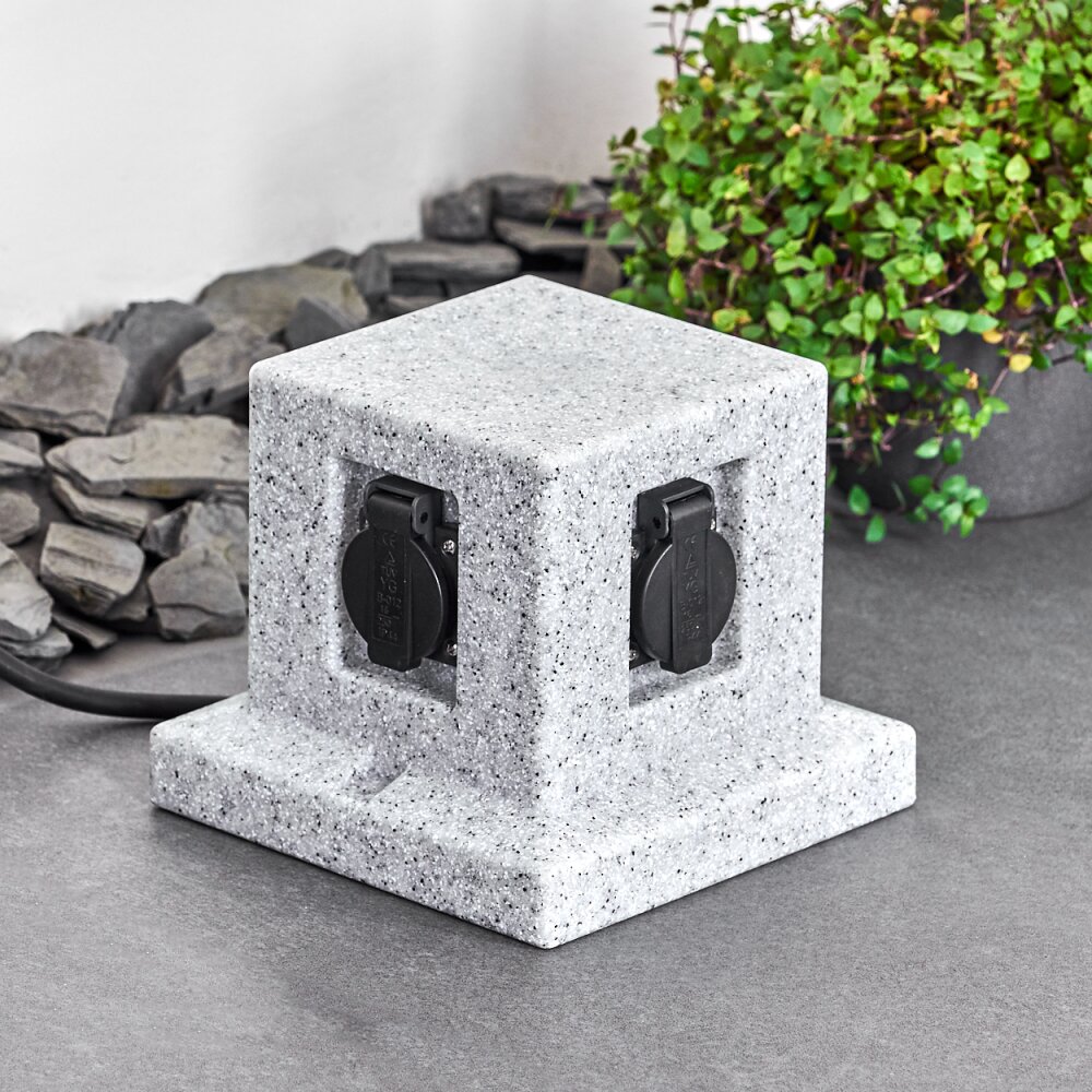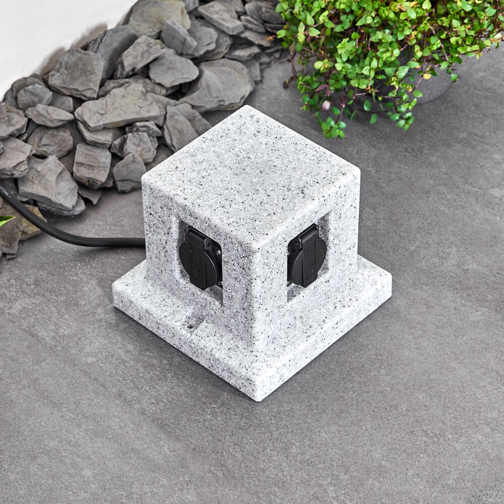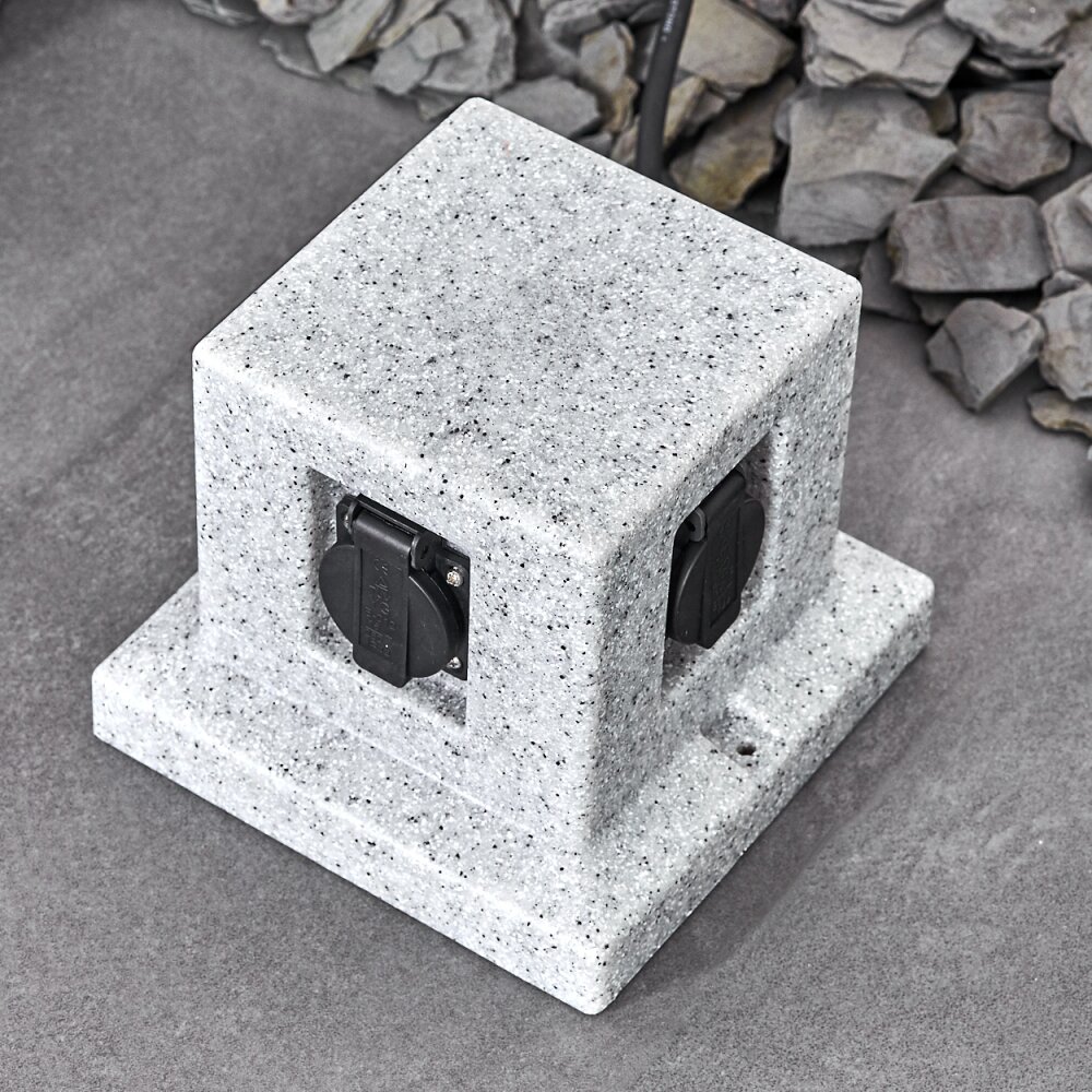 Tinú Buitencontactdoos Zwart, stenen uiterlijk
