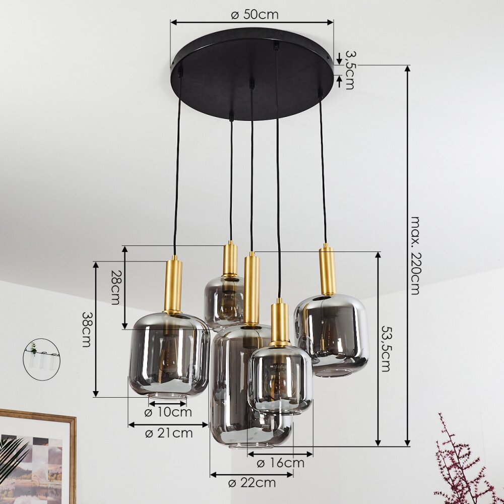 Maliali Hanglamp Goud, Messing, Zwart, 5-lichts