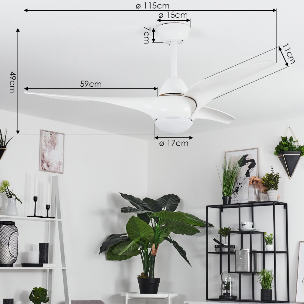 Tjerne plafondventilator LED Wit, 1-licht