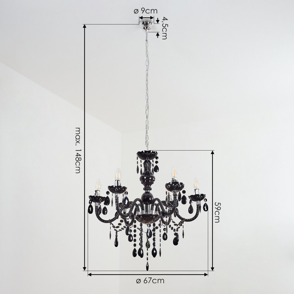 Malmback kroonluchter Chroom, Zwart, 6-lichts
