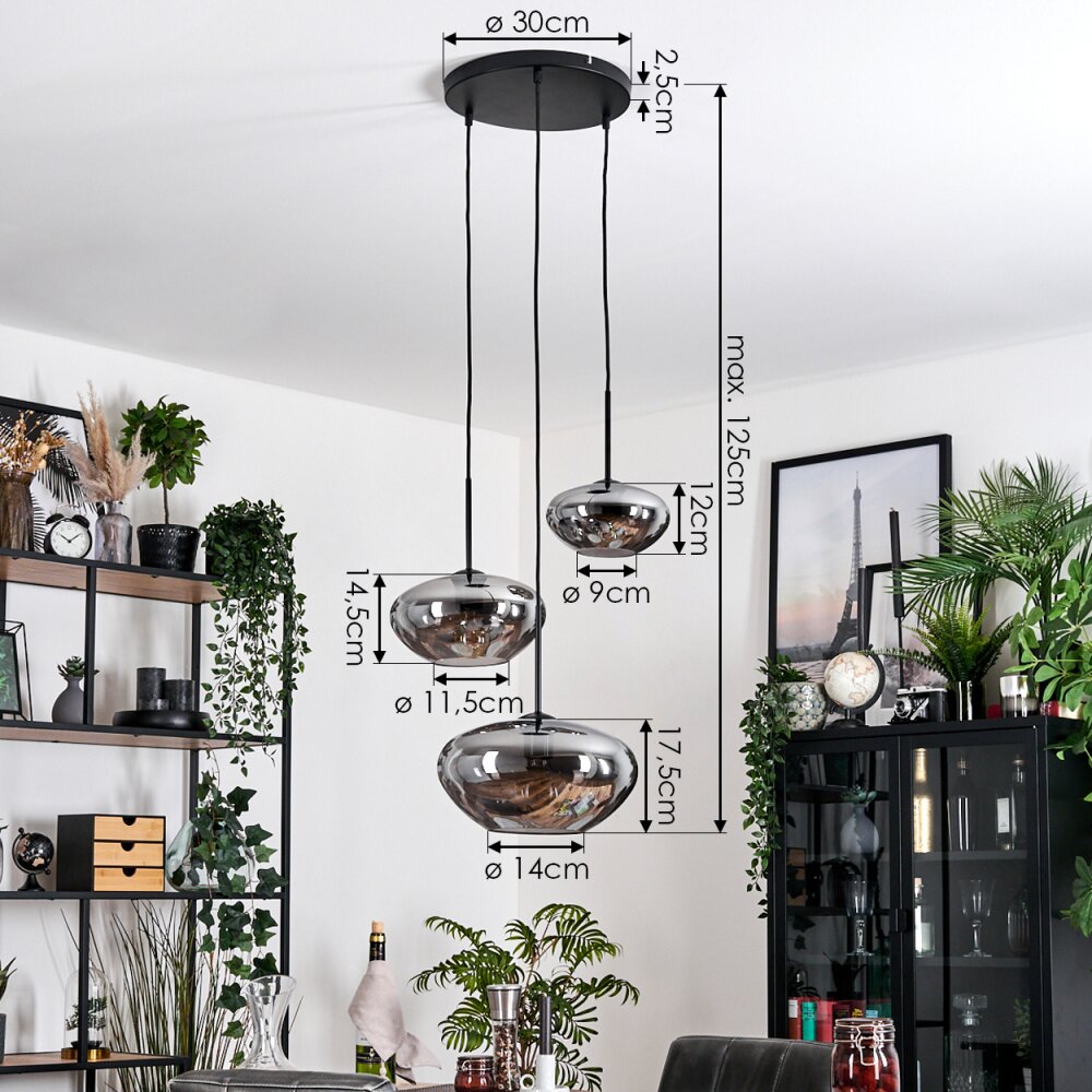 Mertola Hanglamp, Kogellampje Zwart, 3-lichts