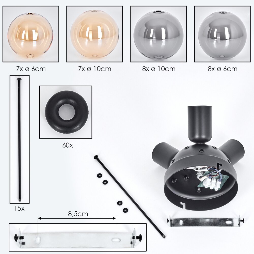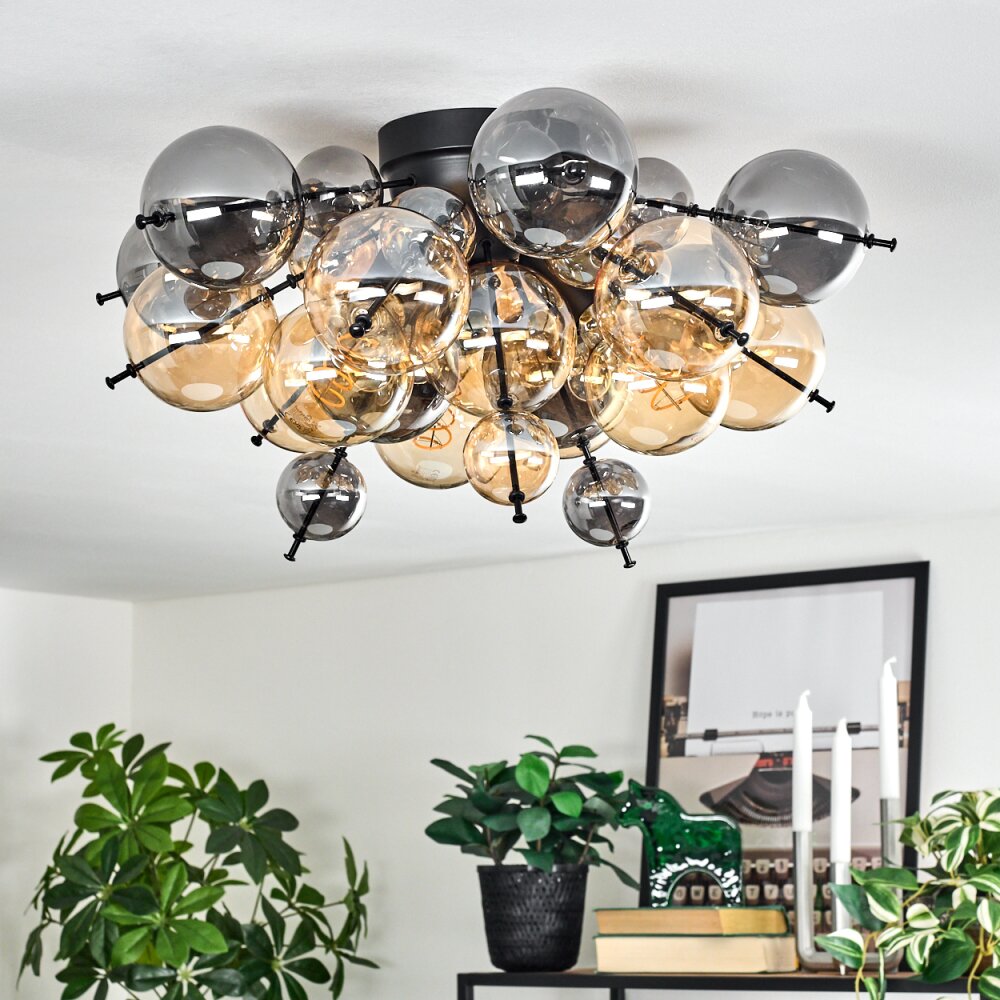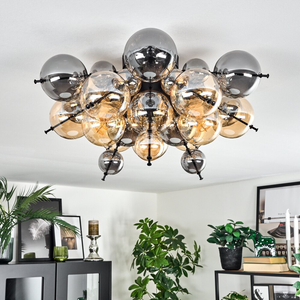 Milheiros Plafondlamp, Kogellampje Amber, Rookkleurig, 3-lichts