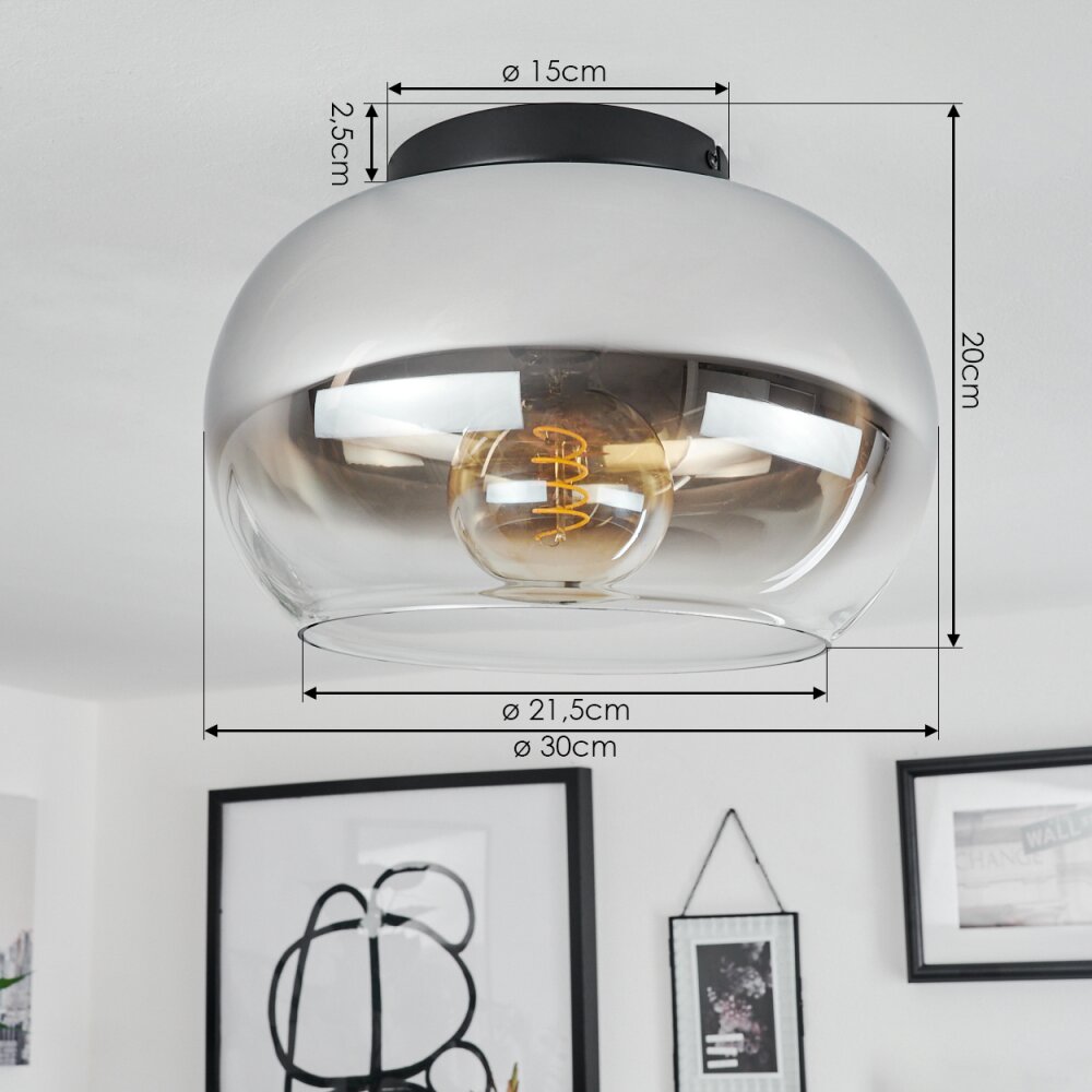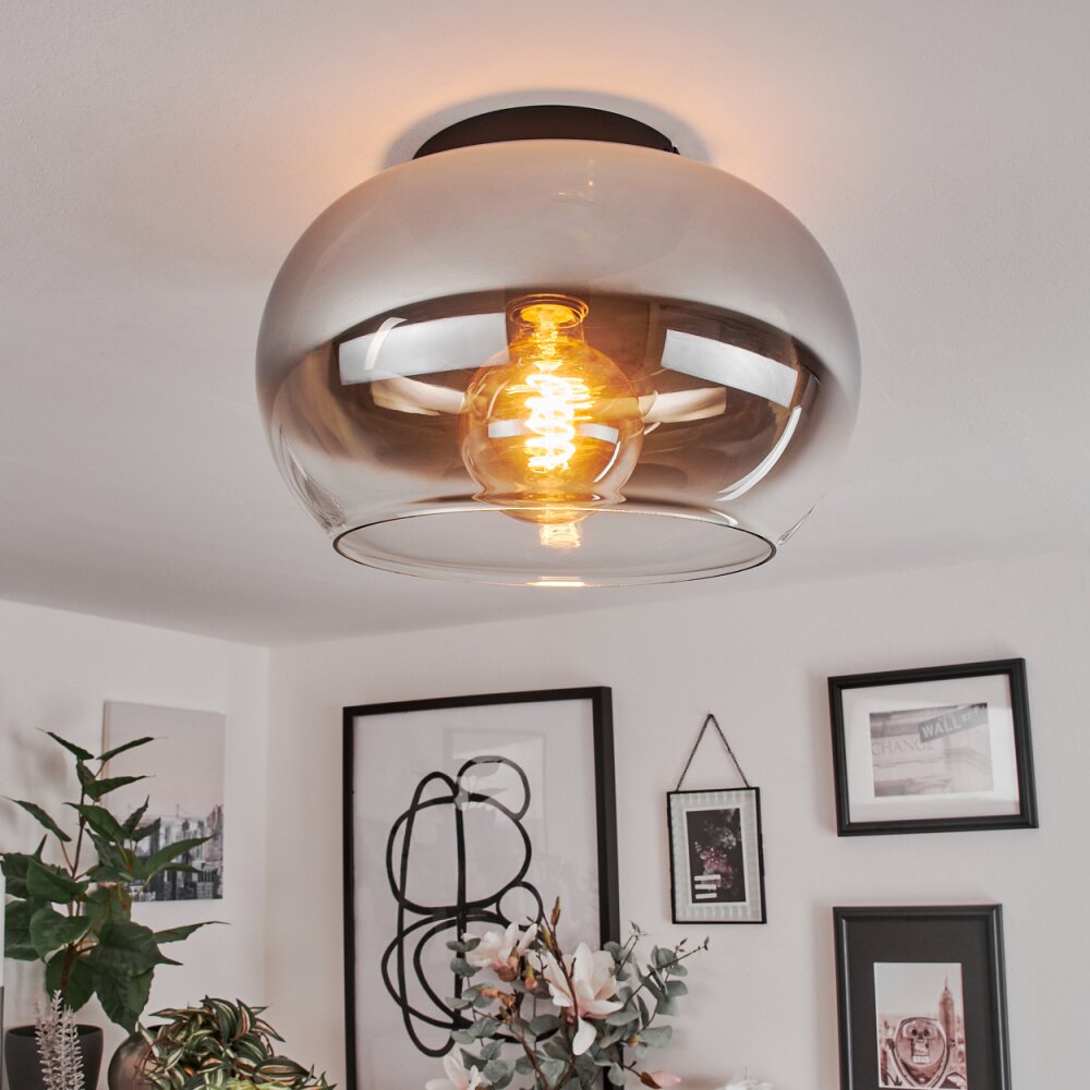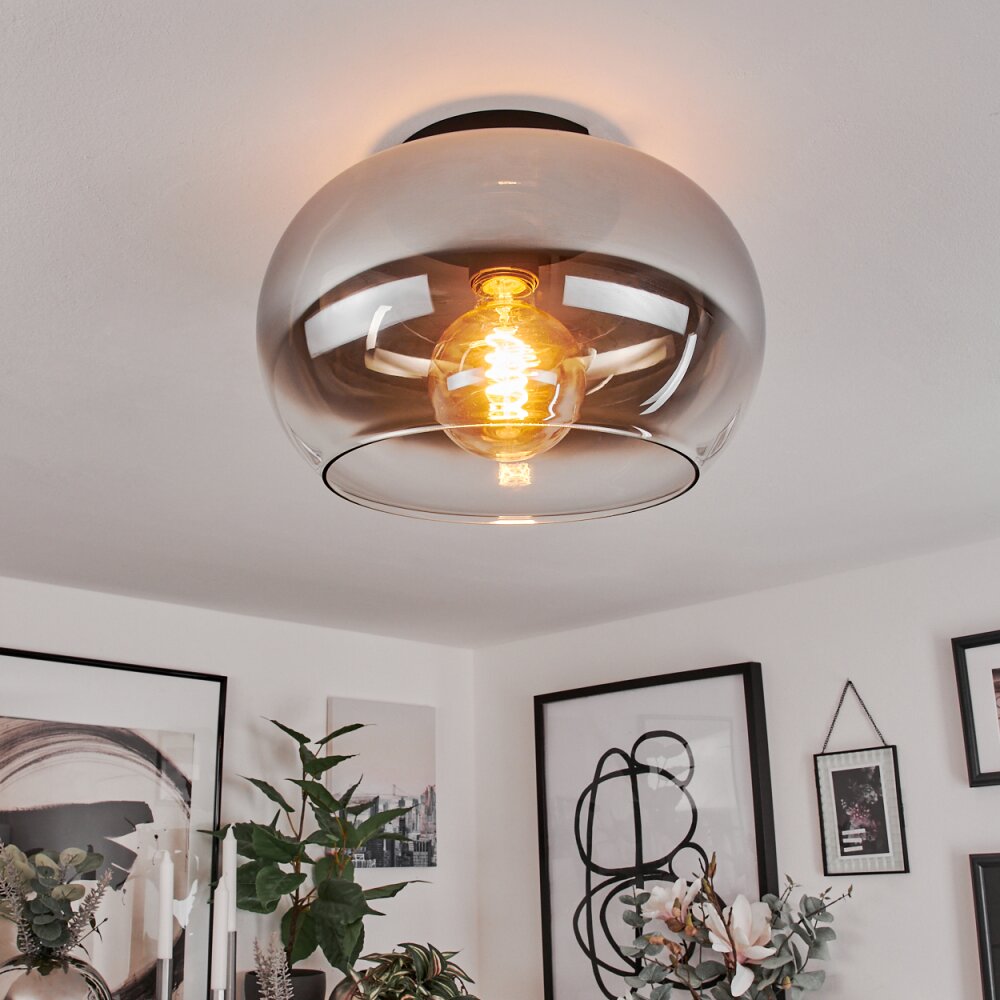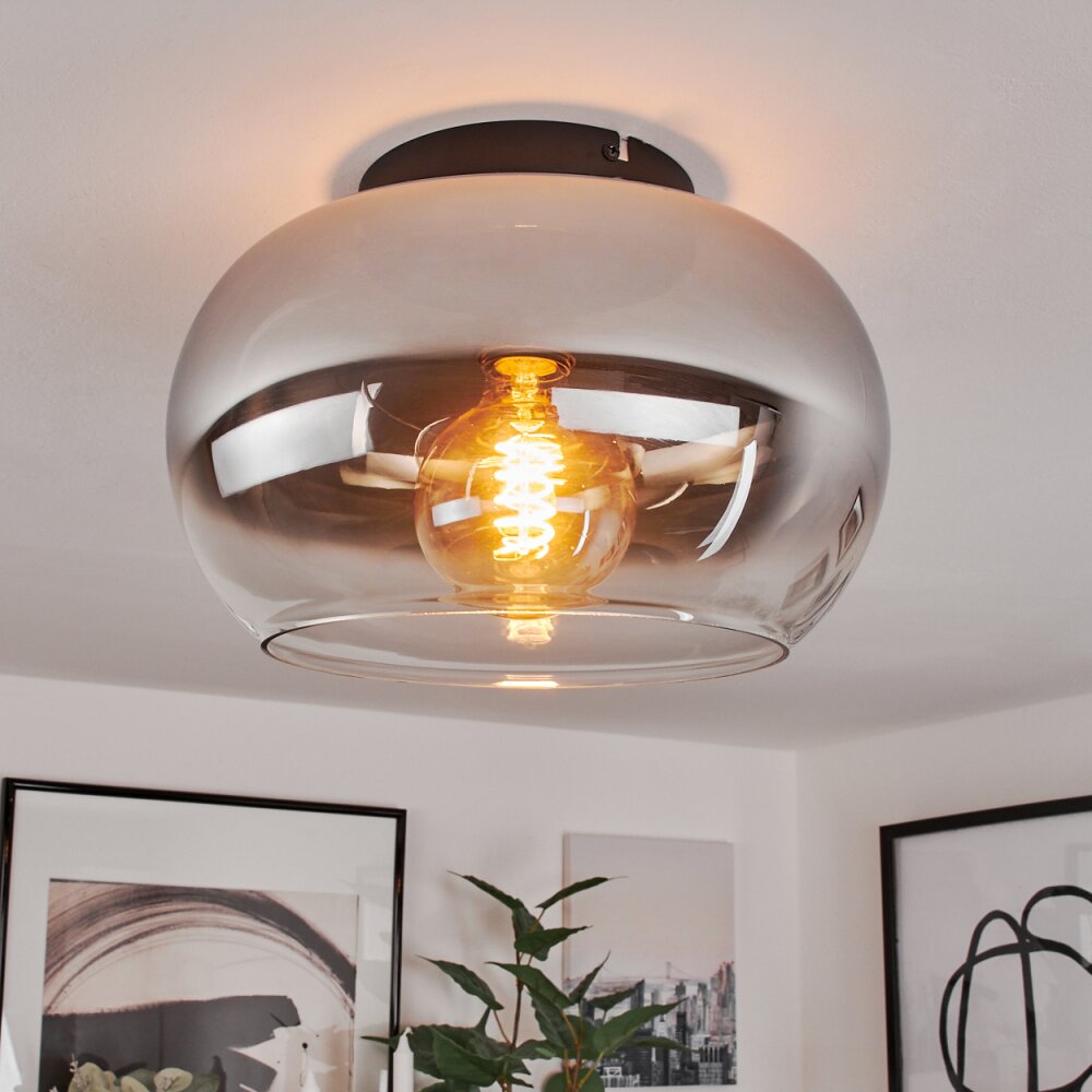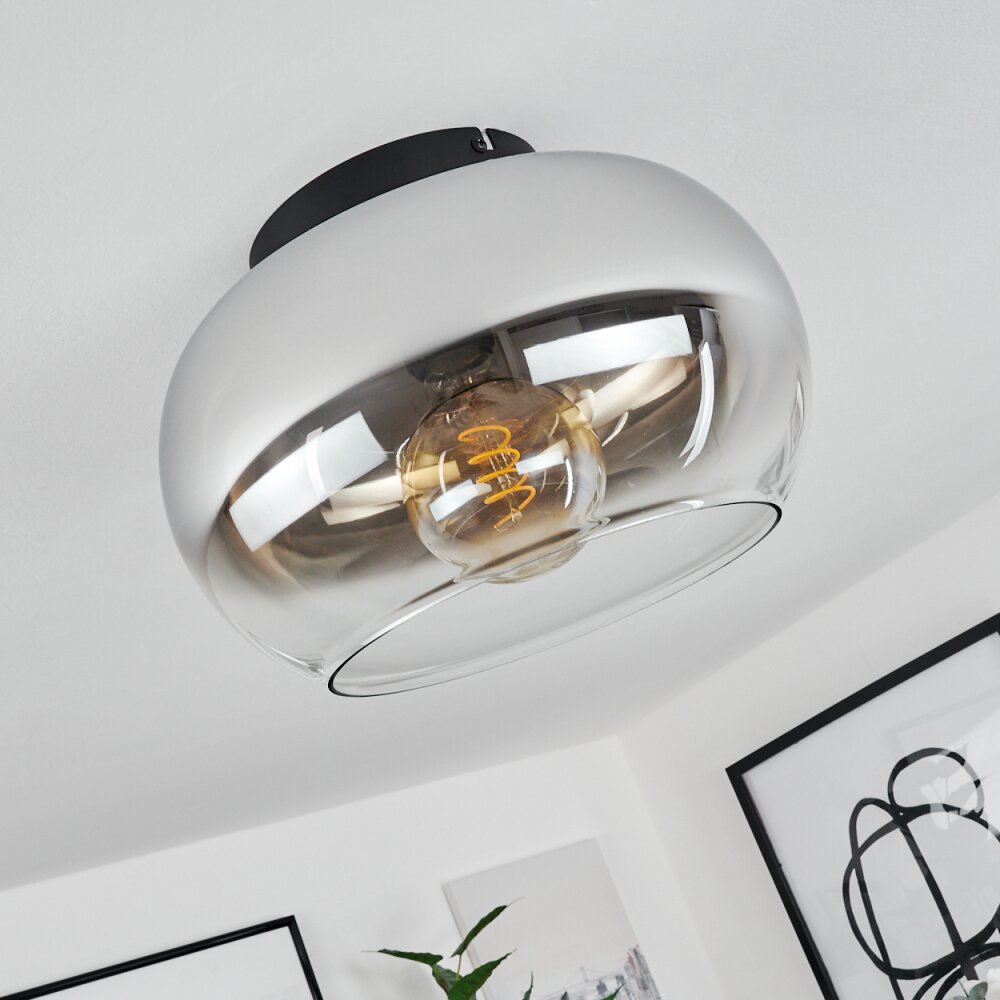 Molloy Plafondlamp Chroom, Duidelijk, Rookkleurig, 1-licht