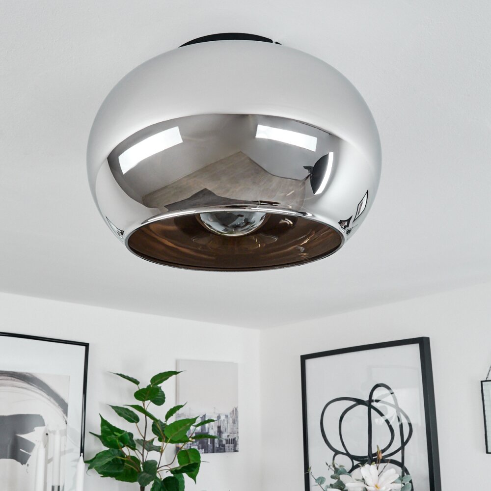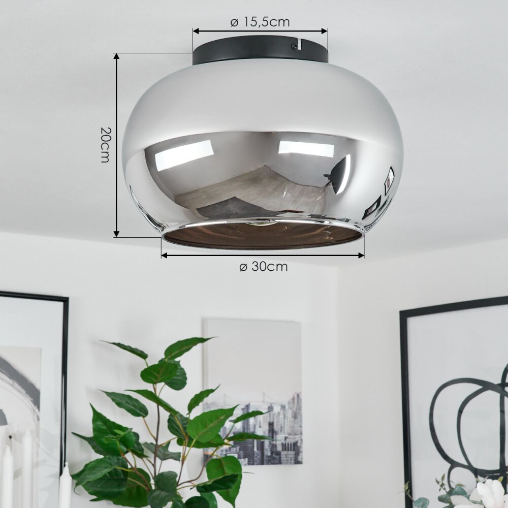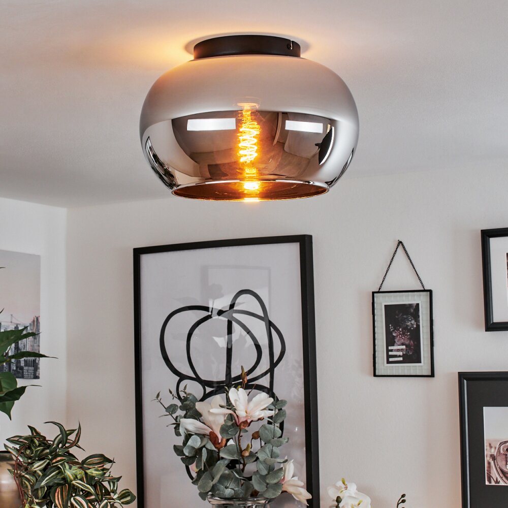 Molloy Plafondlamp Chroom, Rookkleurig, 1-licht