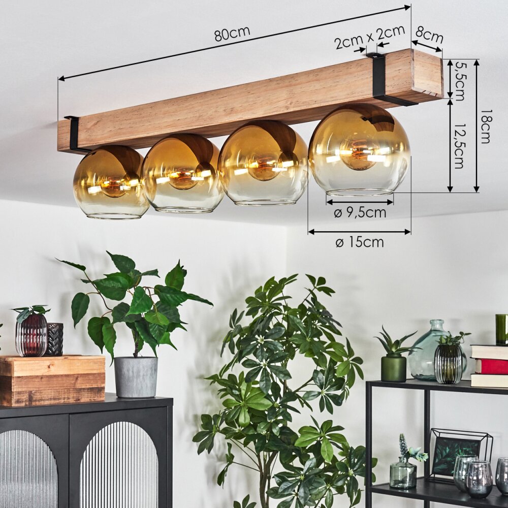 Montgomery Plafondlamp Glas 15 cm Natuurlijke kleuren, Zwart, 4-lichts