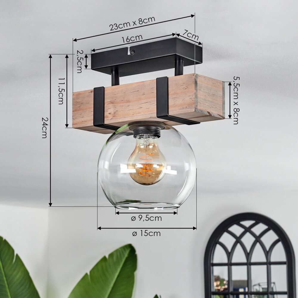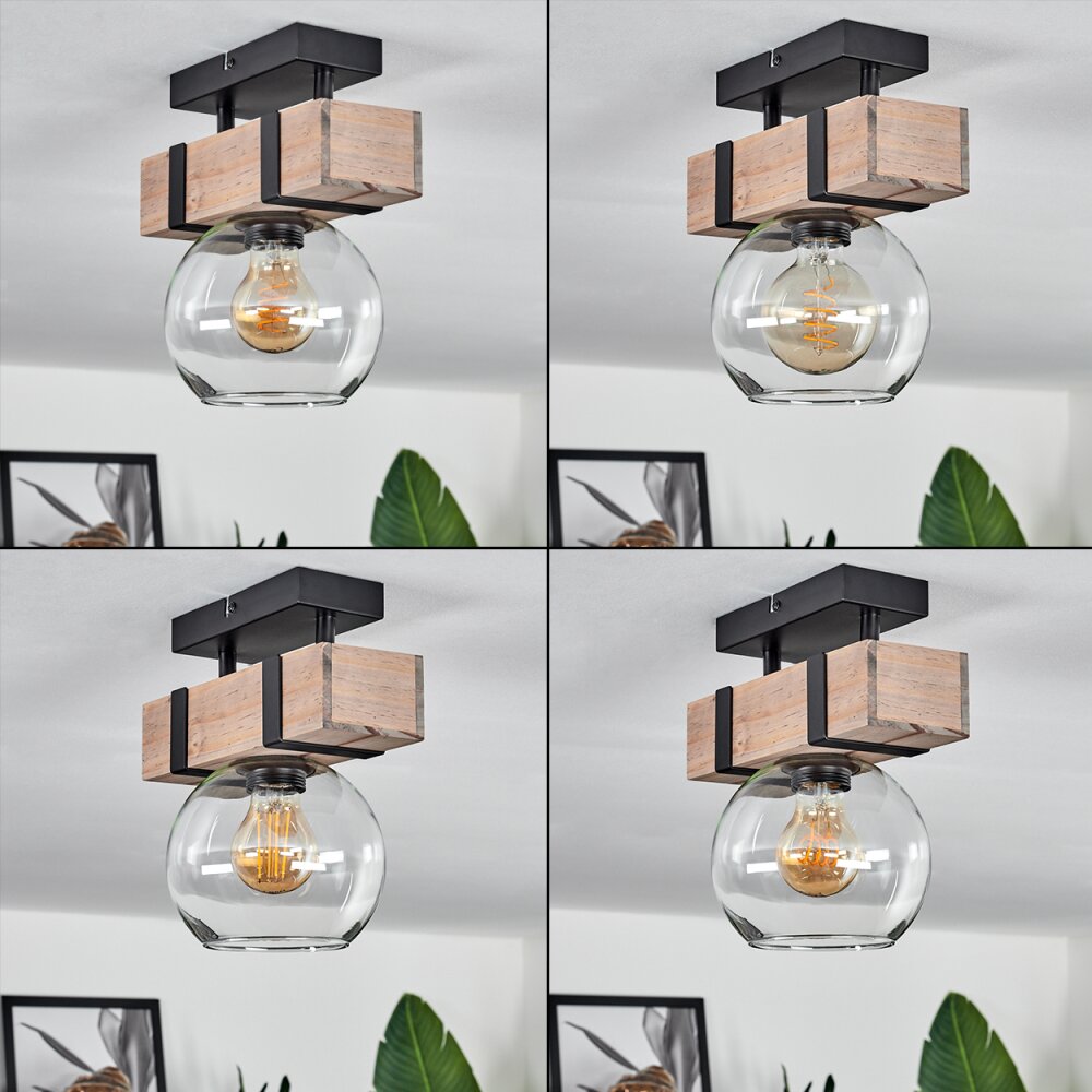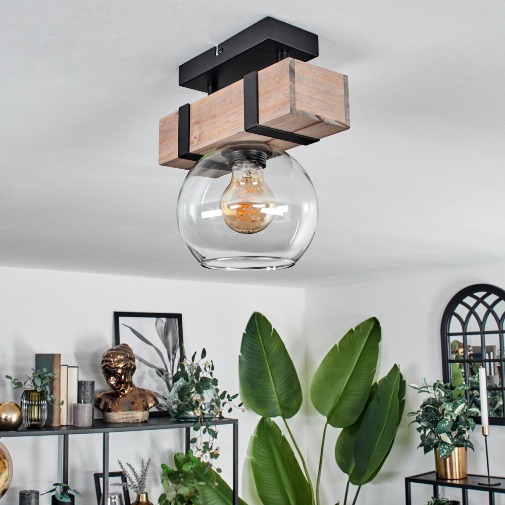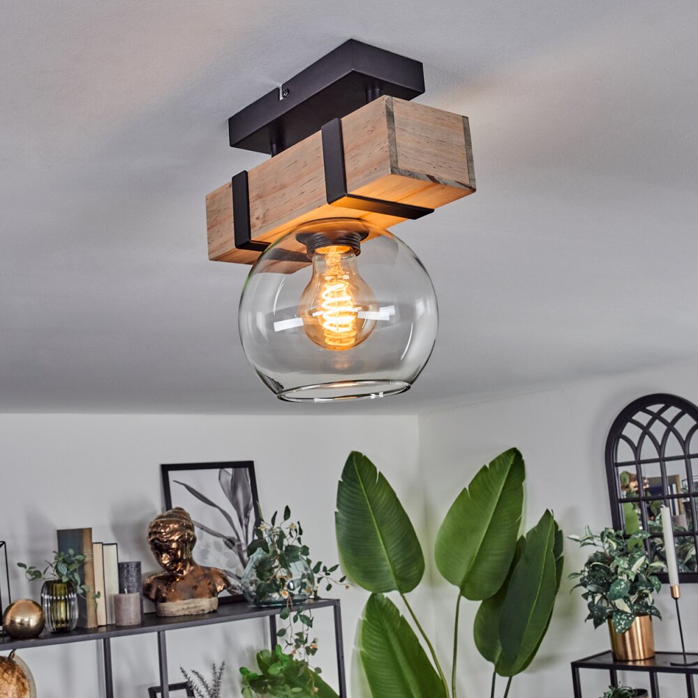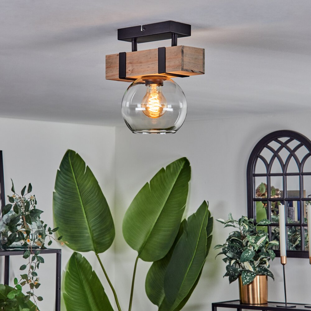 Montgomery Plafondlamp - Glas 15 cm Natuurlijke kleuren, Zwart, 1-licht