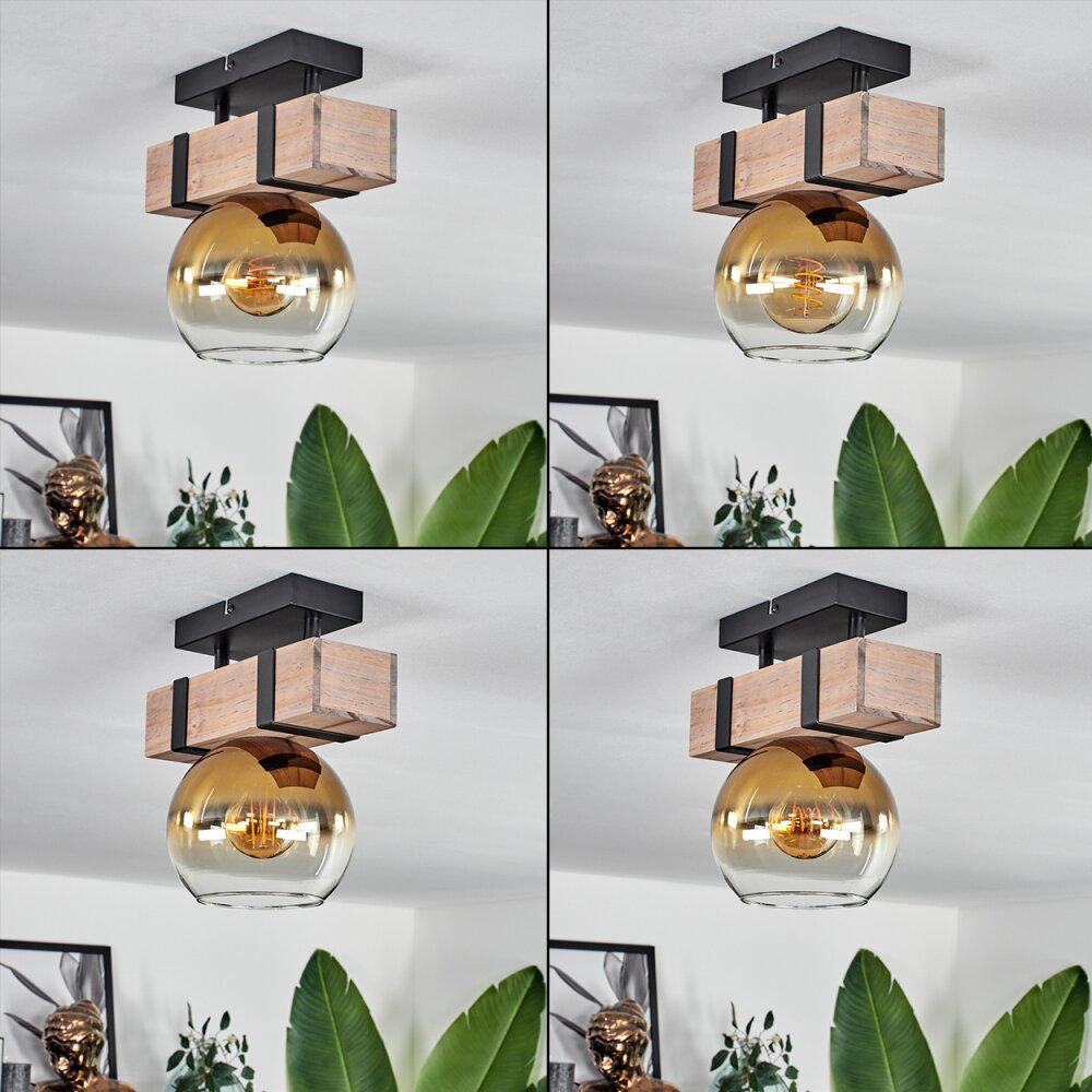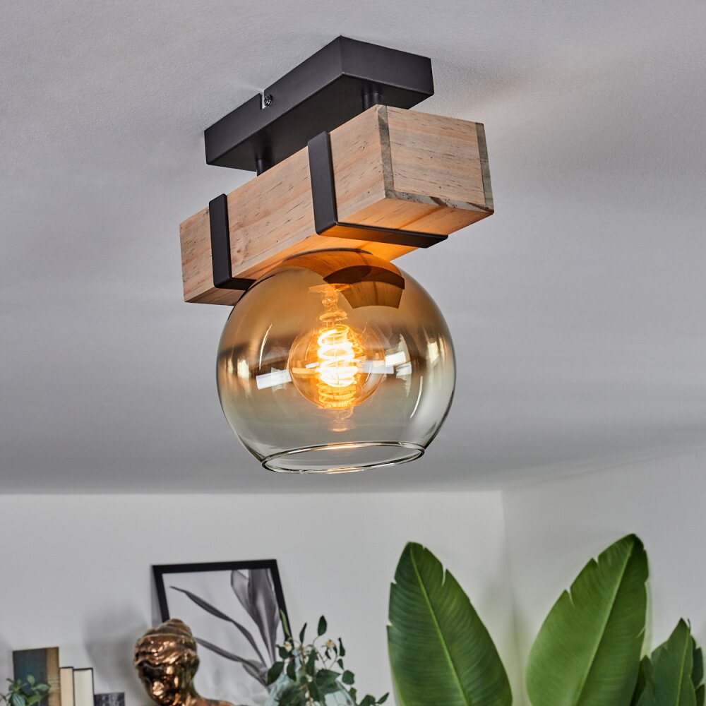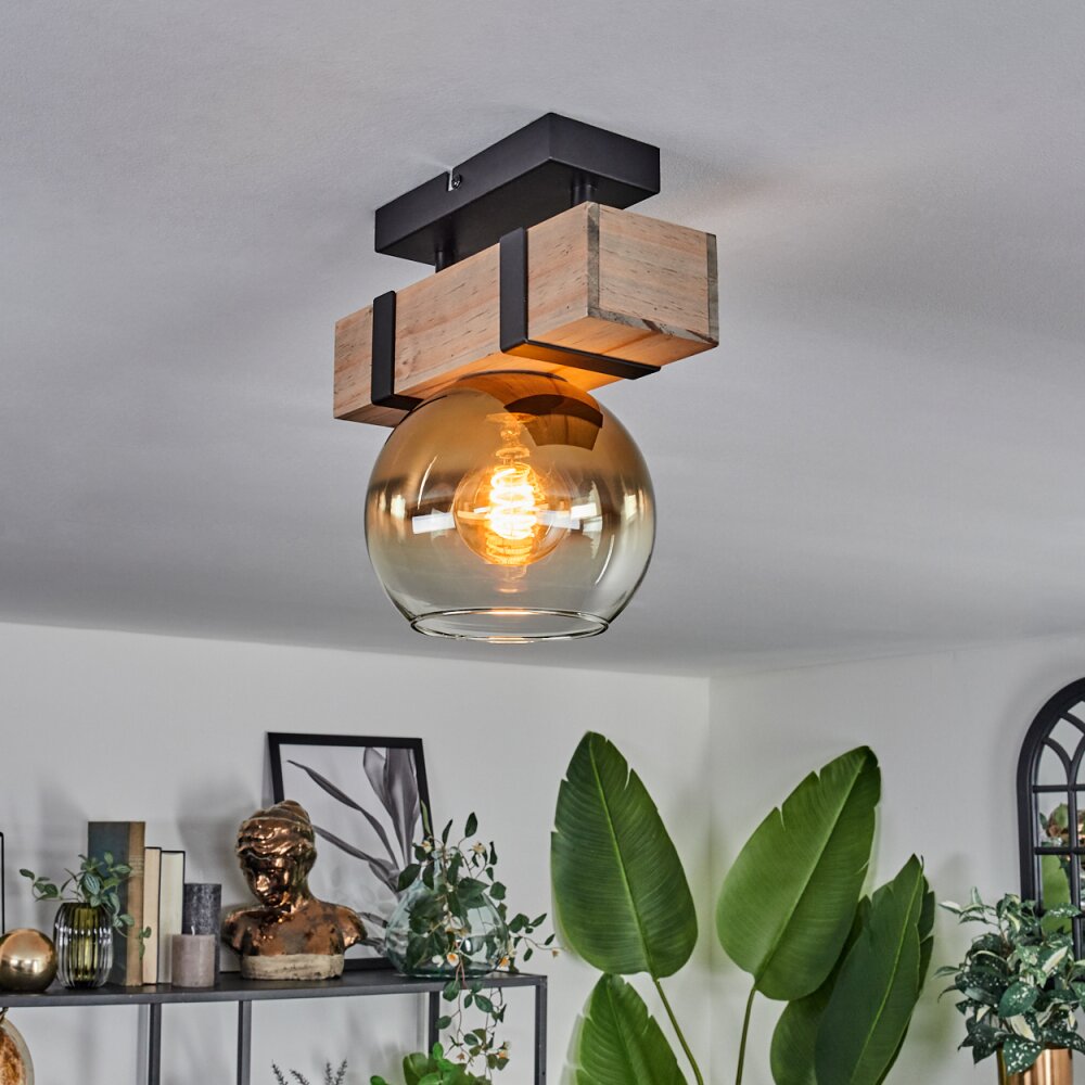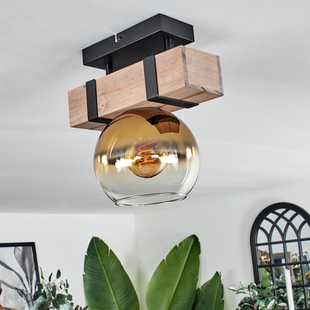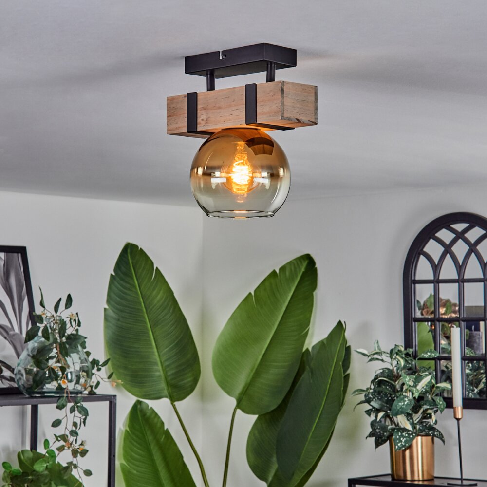 Montgomery Plafondlamp - Glas 15 cm Natuurlijke kleuren, Zwart, 1-licht
