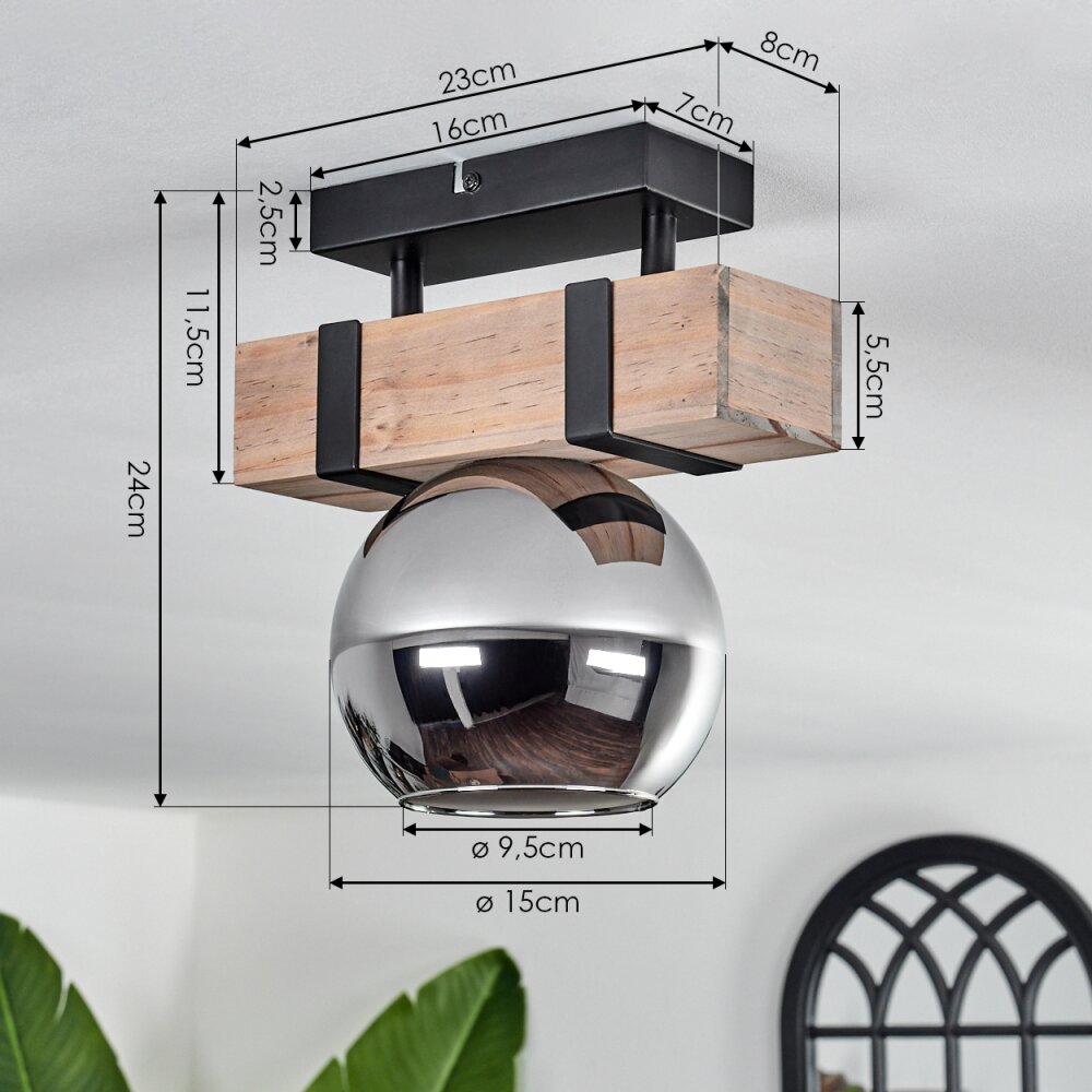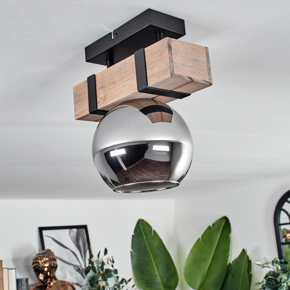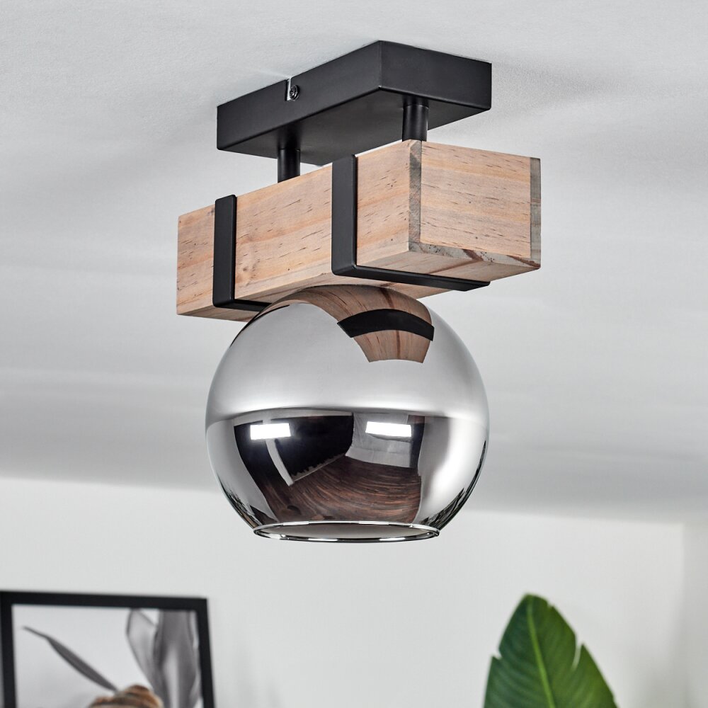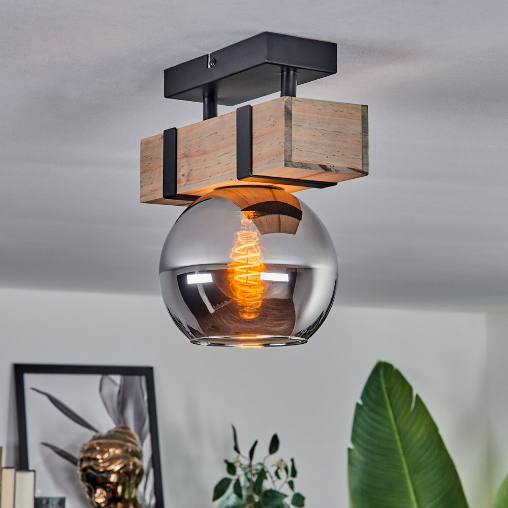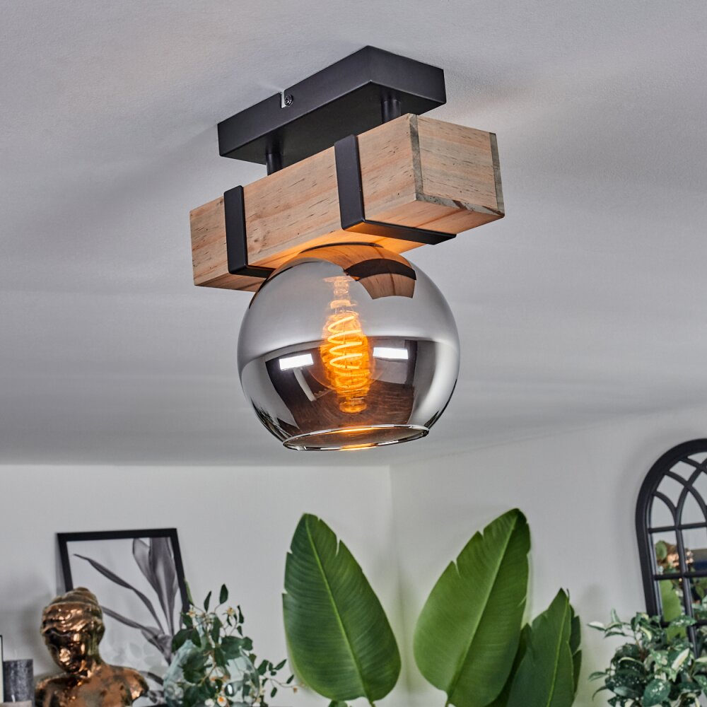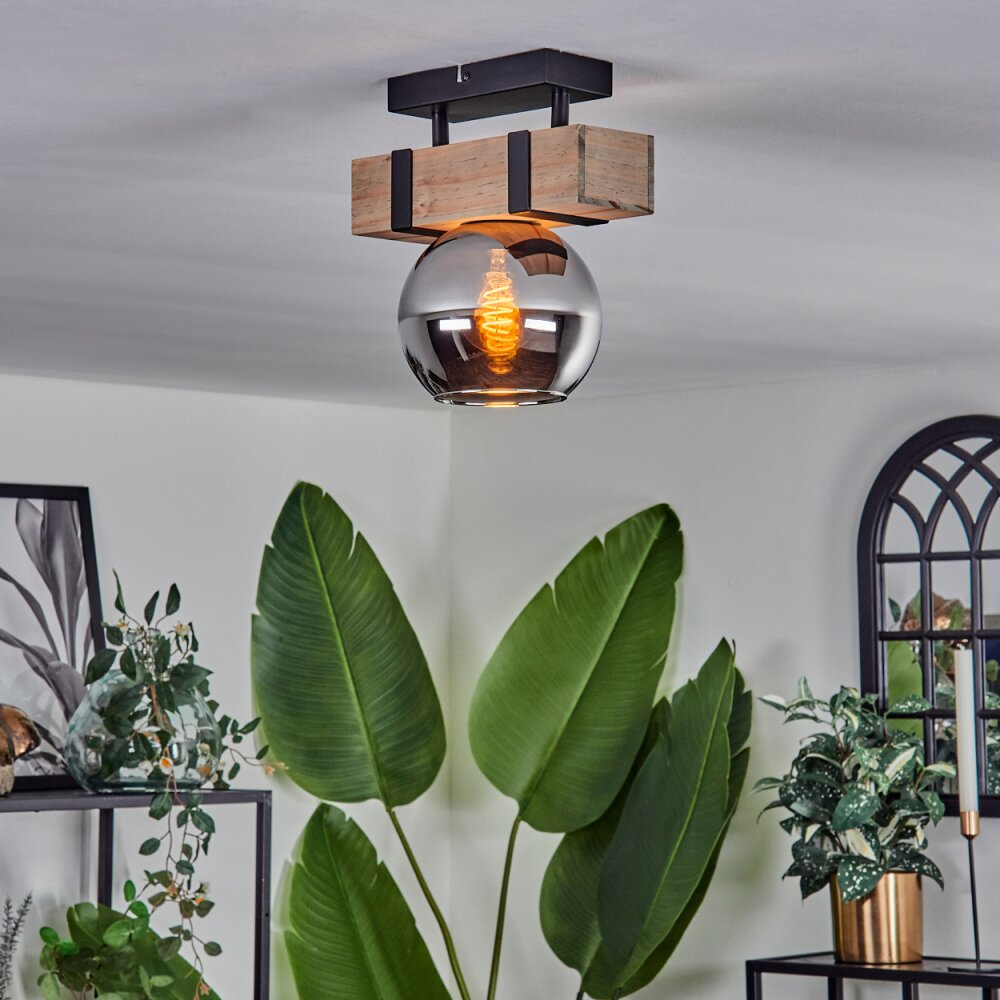 Montgomery Plafondlamp - Glas 15 cm Natuurlijke kleuren, Zwart, 1-licht