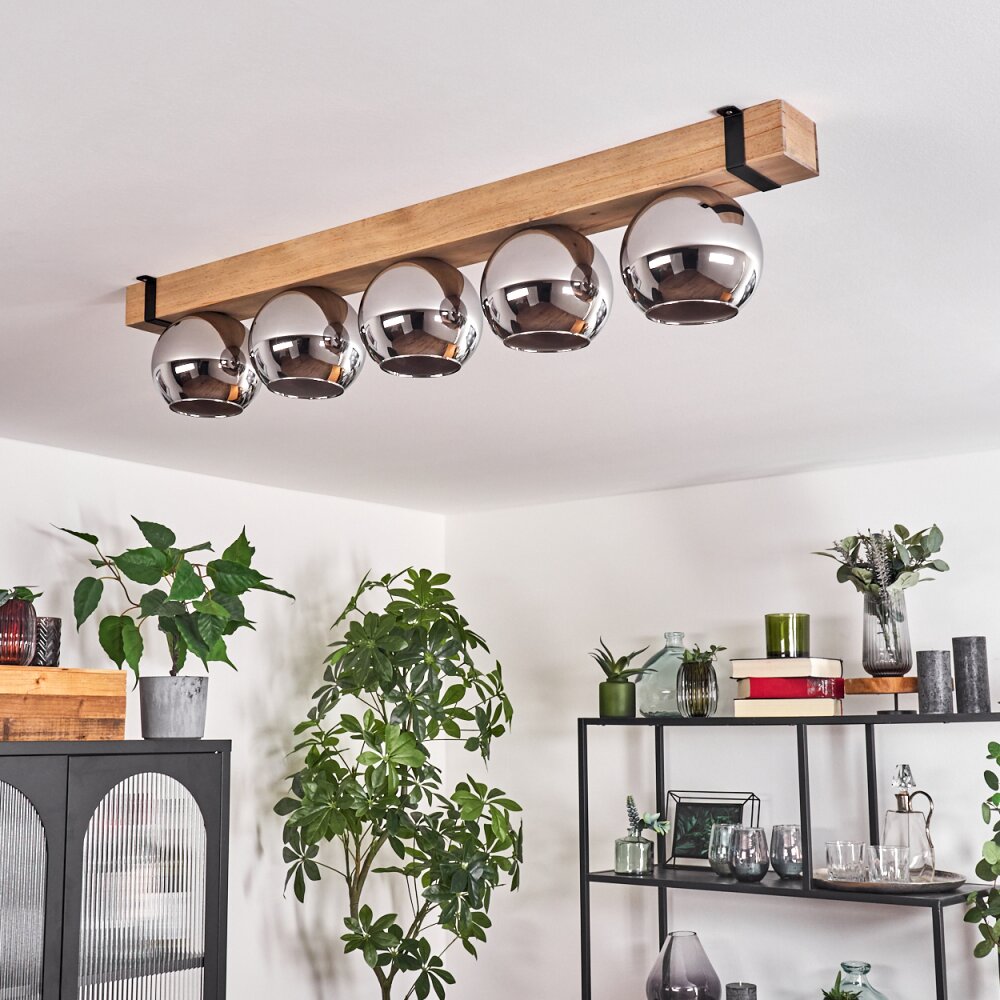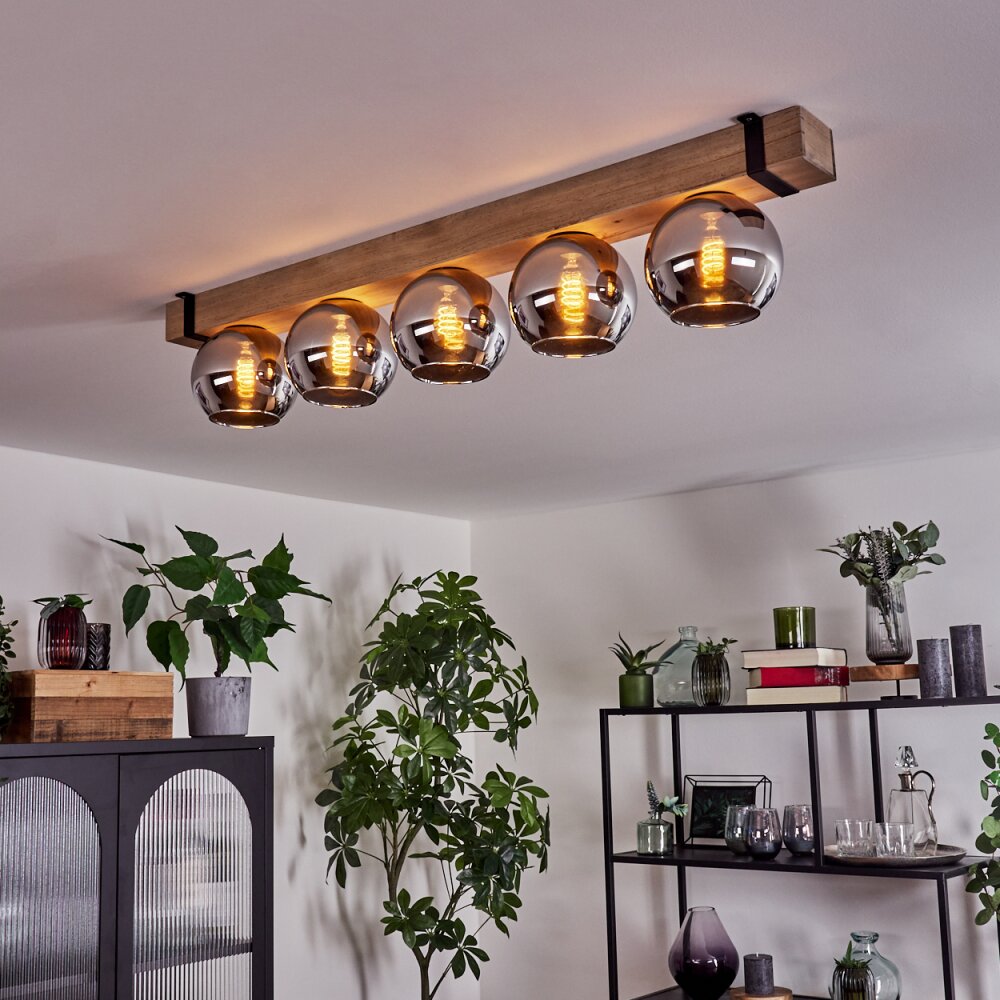Montgomery Plafondlamp - Glas Natuurlijke kleuren, Zwart, 5-lichts
