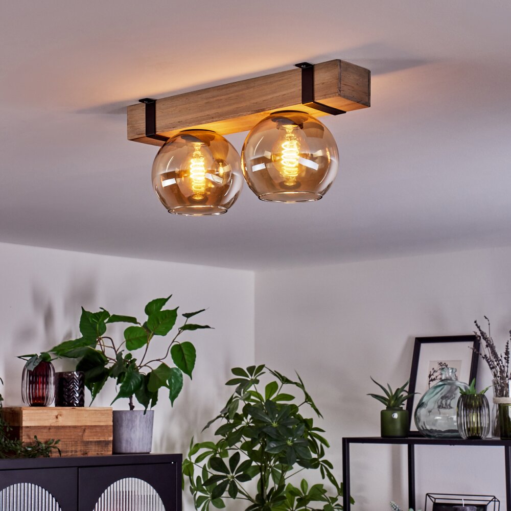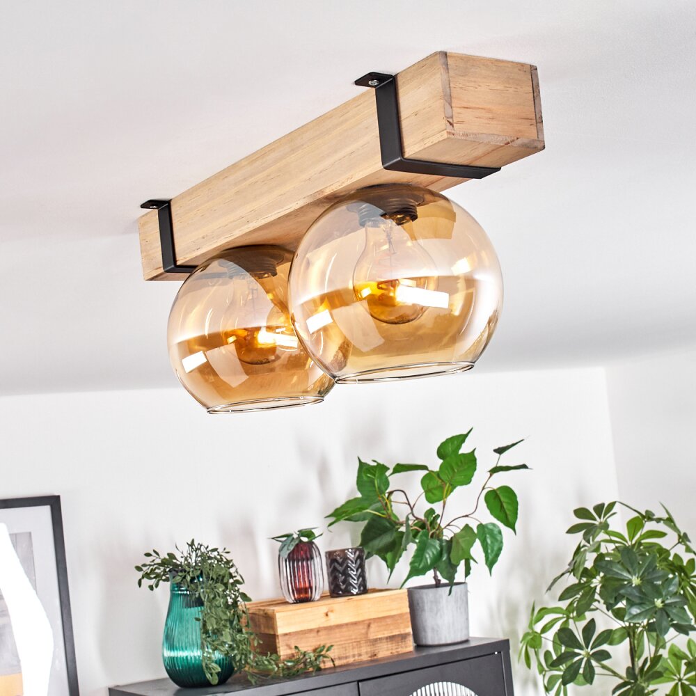 Montgomery Plafondlamp - Glas Natuurlijke kleuren, Zwart, 2-lichts