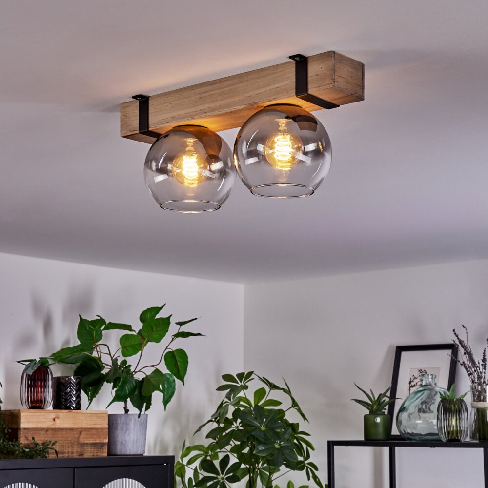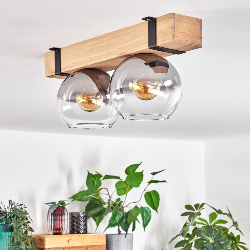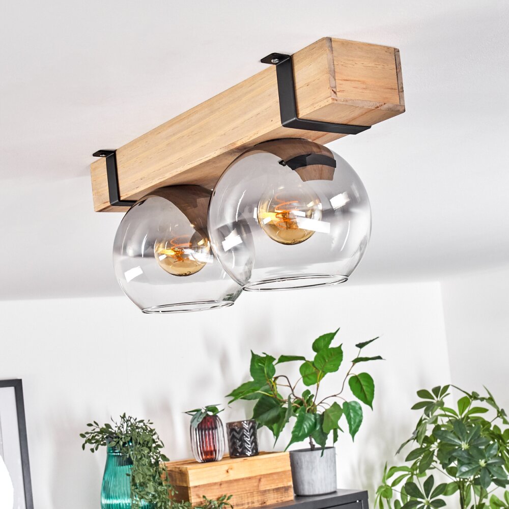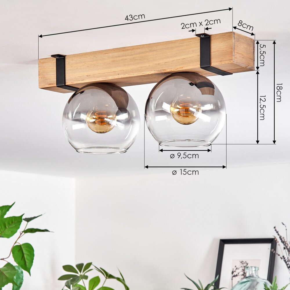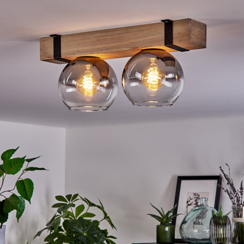 Montgomery Plafondlamp - Glas Natuurlijke kleuren, Zwart, 2-lichts
