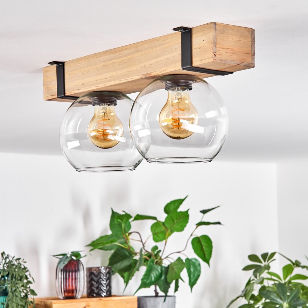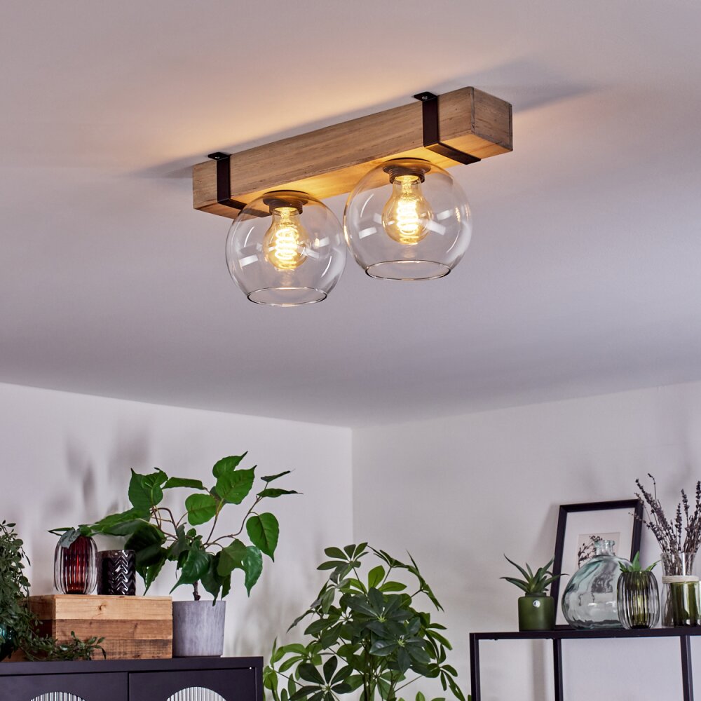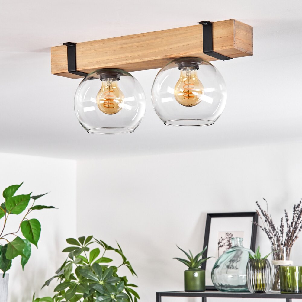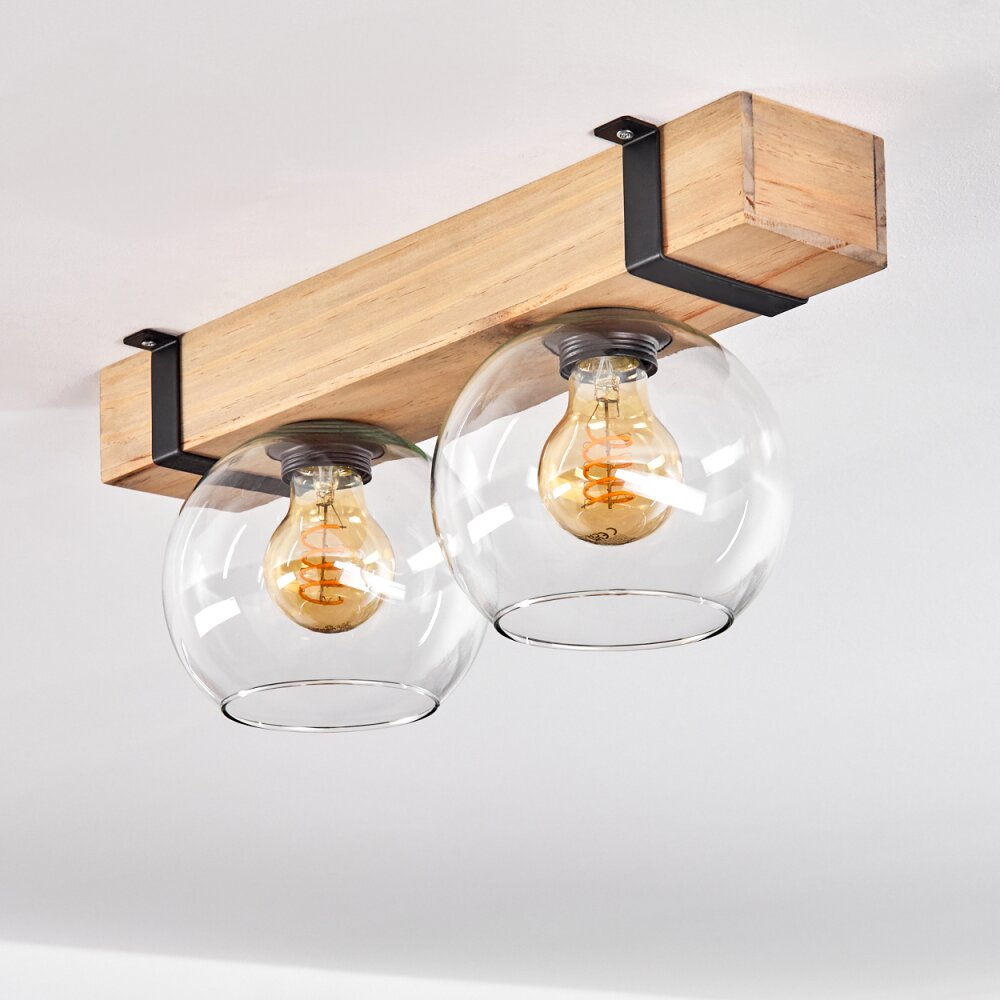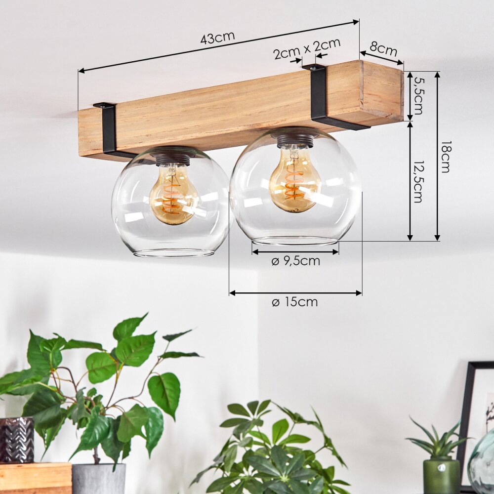 Montgomery Plafondlamp - Glas Natuurlijke kleuren, Zwart, 2-lichts