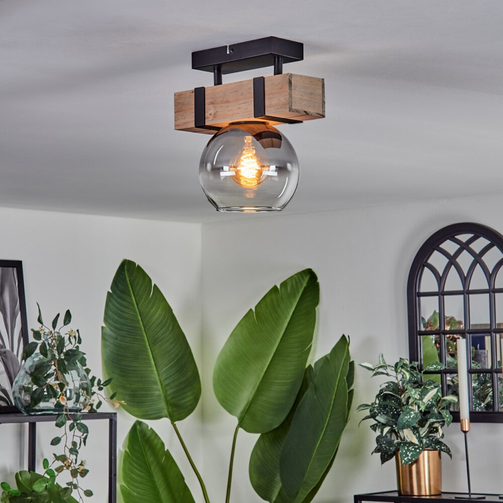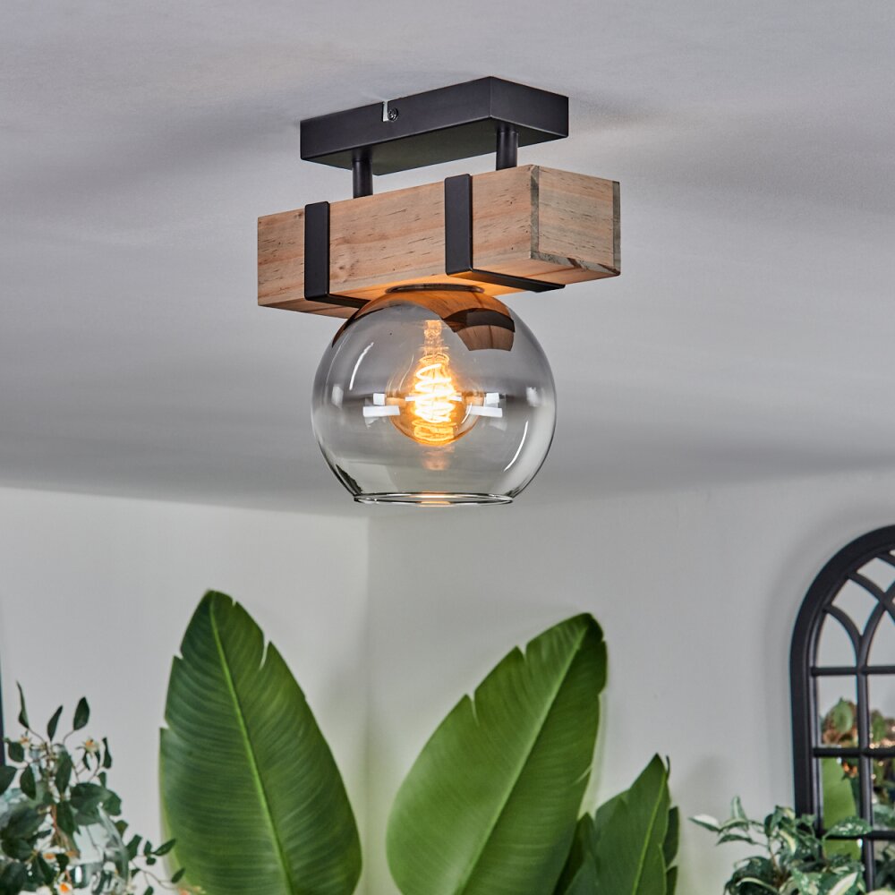 Montgomery Plafondlamp - Glas Natuurlijke kleuren, Zwart, 1-licht