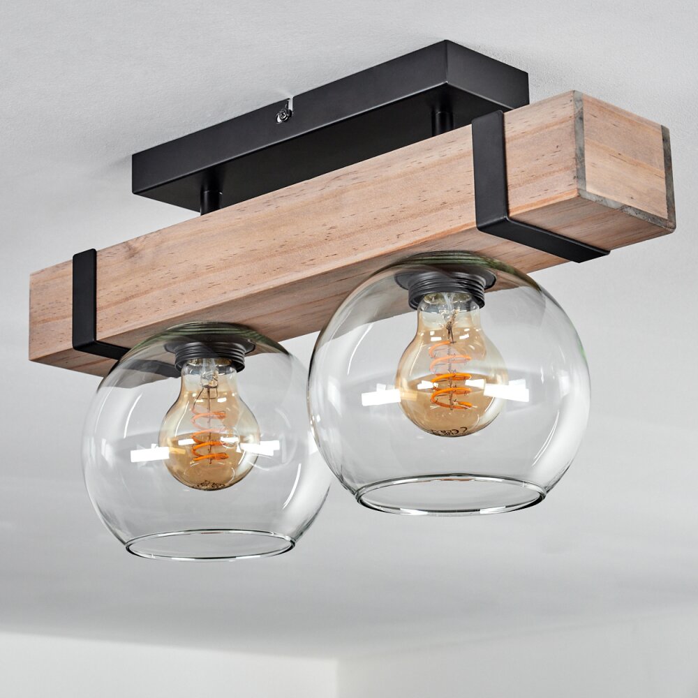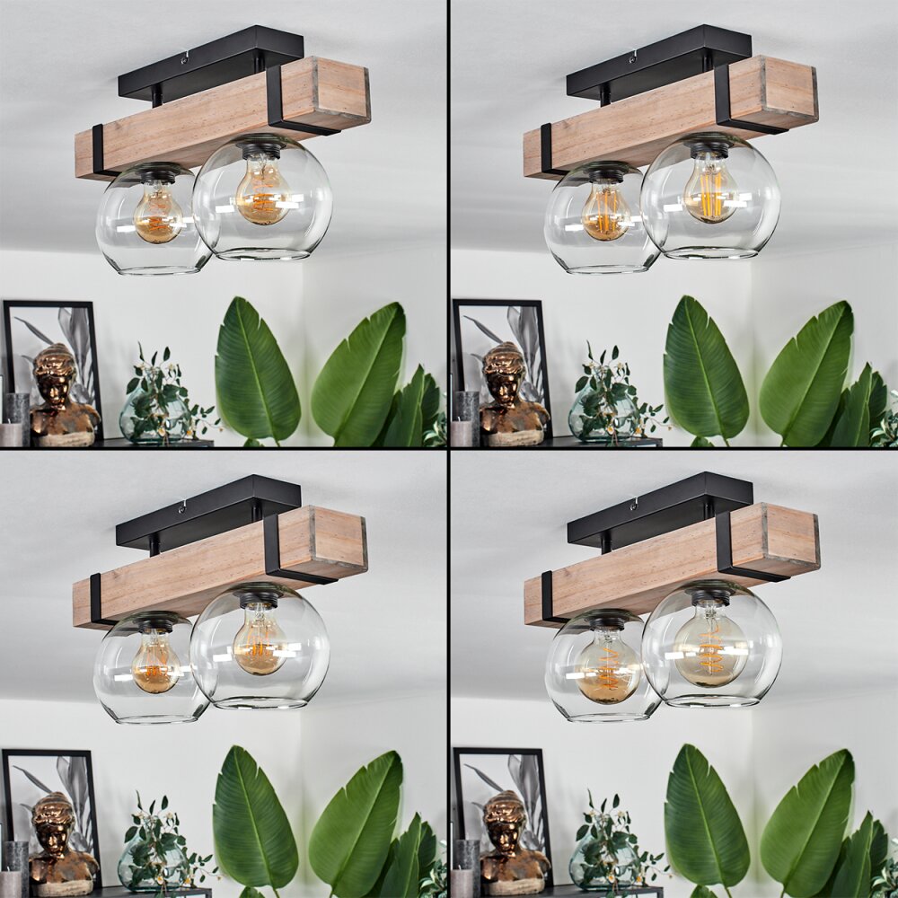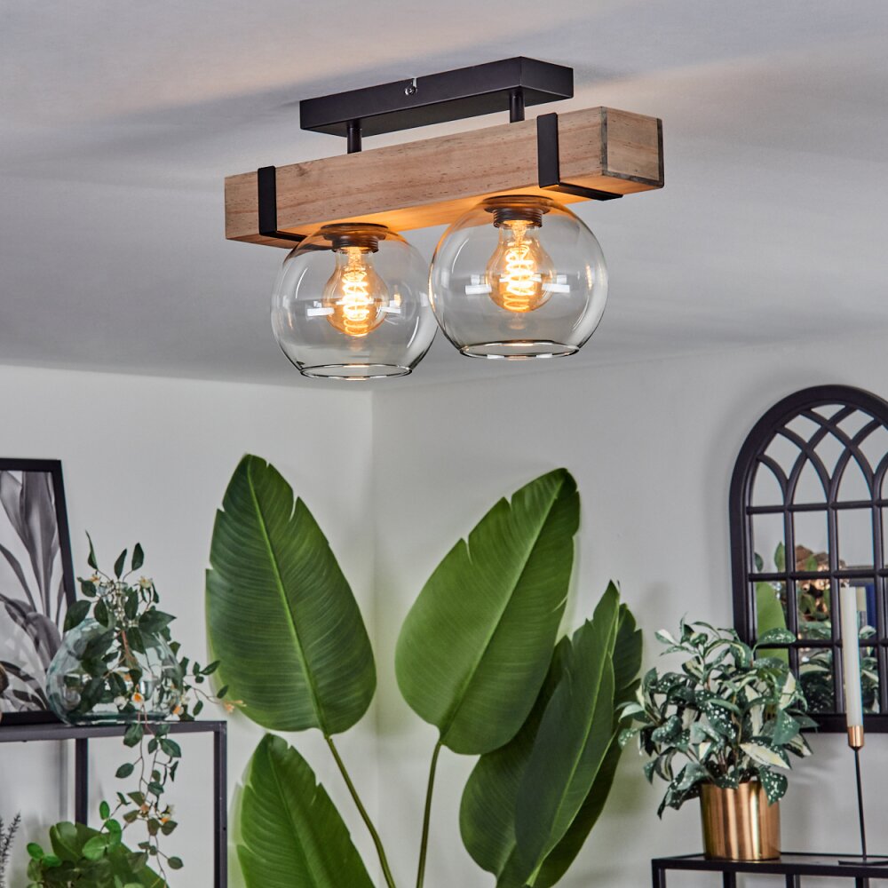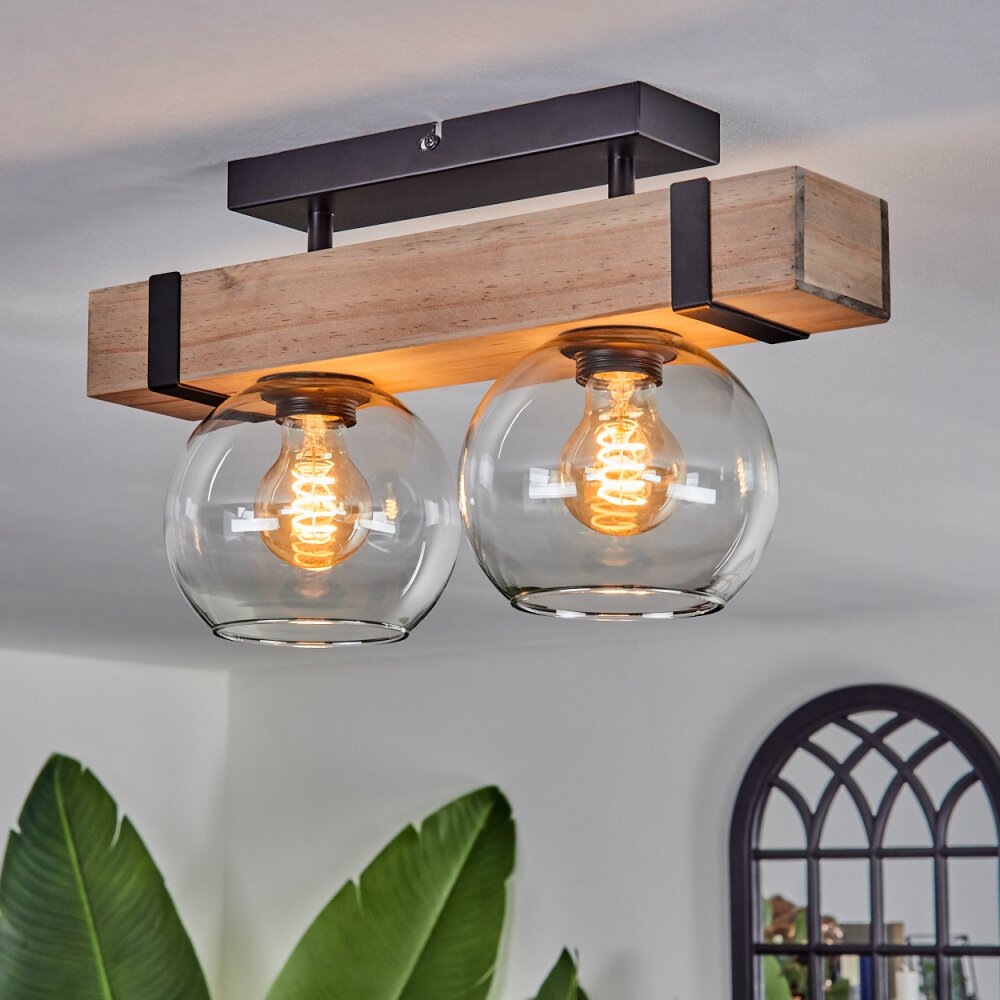 Montgomery Plafondlamp - Glas Natuurlijke kleuren, Zwart, 2-lichts