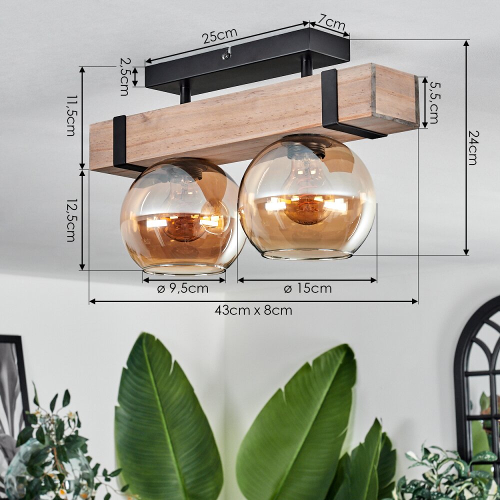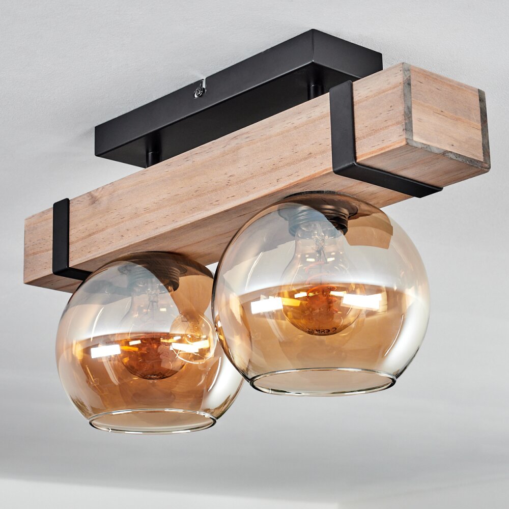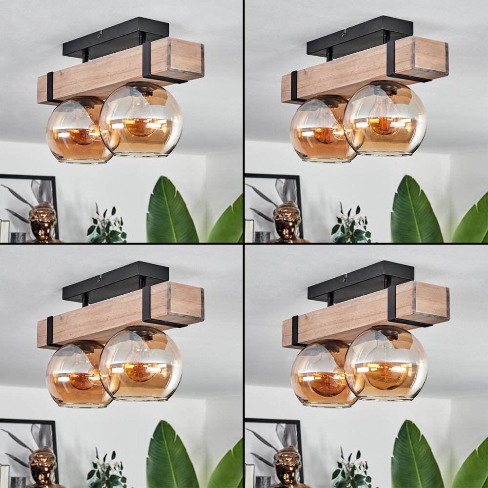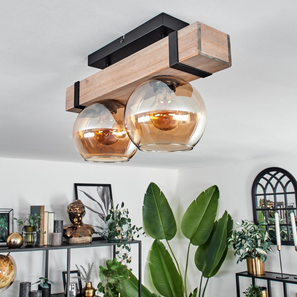 Montgomery Plafondlamp - Glas Natuurlijke kleuren, Zwart, 2-lichts