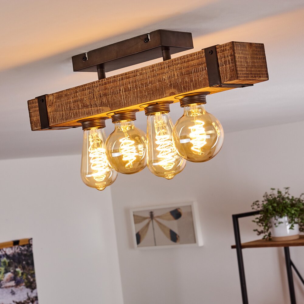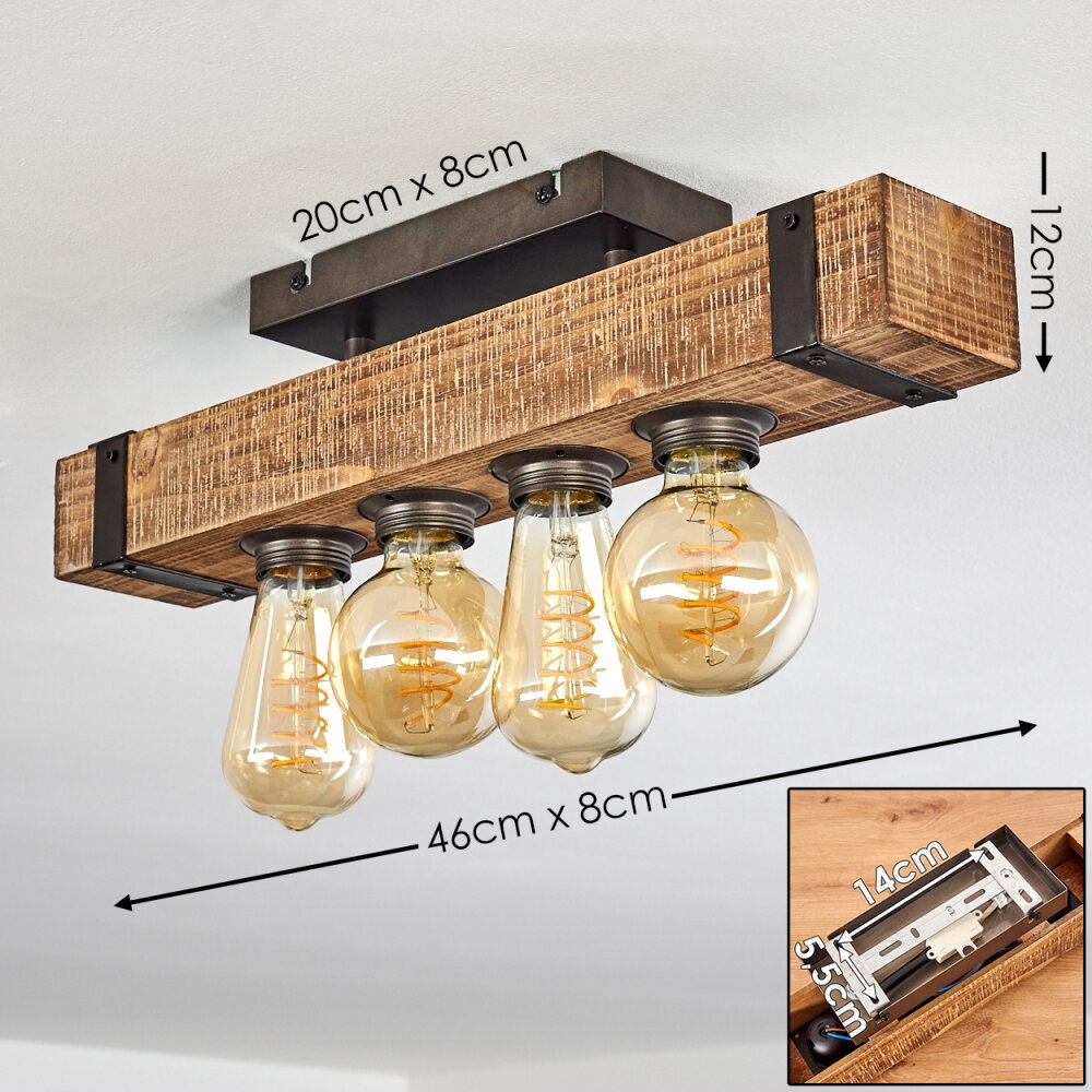 Montgomery Plafondlamp Hout donker, Zwart, 4-lichts
