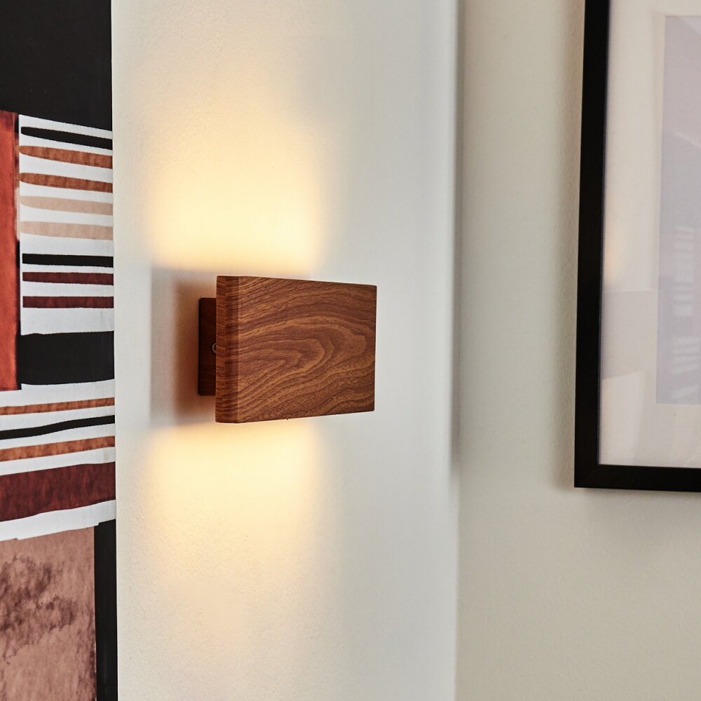 Mosambik Muurlamp LED Bruin, Hout donker, Nikkel mat, 1-licht