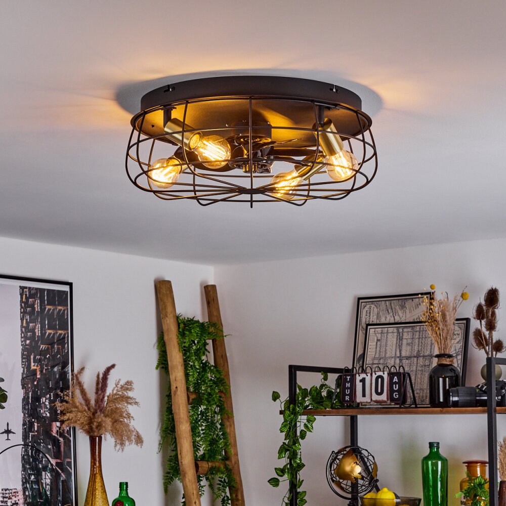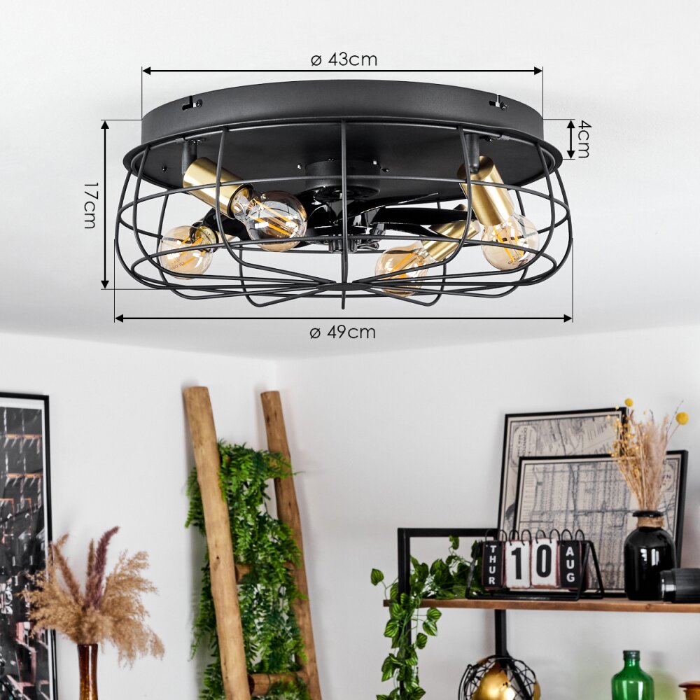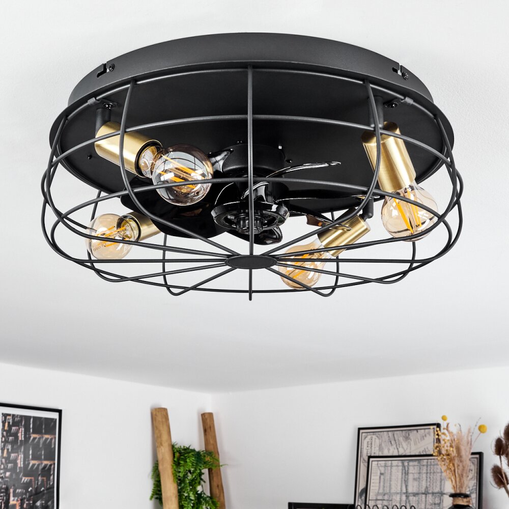 Moscavide plafondventilator Messing, Zwart, 4-lichts, Afstandsbediening